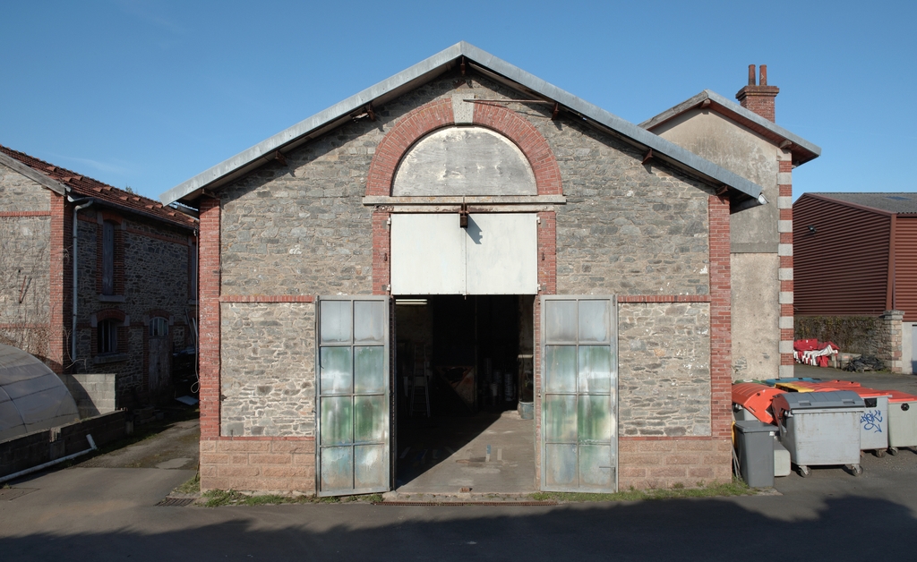 Tréguier, rue du Guindy : abattoir public municipal, bâtiment administratif et "halle d'abatage des bouchers" (façade sud de la halle)Immatriculation