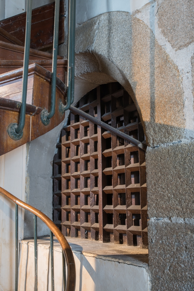 Chapelle Sainte-Marie-Madeleine. Pignon ouest. Détail de la baie grillagée voisine de l'arcadeImmatriculation