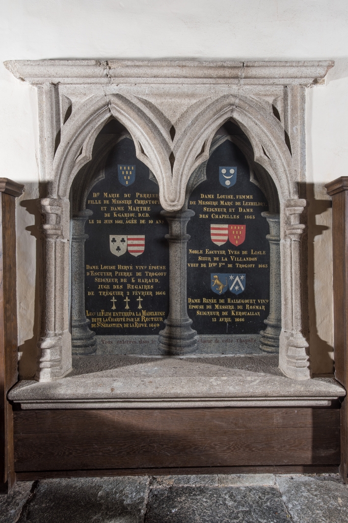 Chapelle Sainte-Marie-Madeleine. Vestiges d'un crédence liturgique transformée en petit monument commémoratif eu 19e siècle. Vue généraleImmatriculation