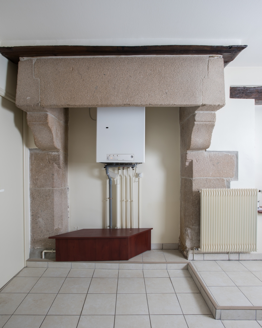 Tréguier, 6 Place du Général de Gaulle : maison d'armateur actuellement "pharmacie des Quais", premier étage (mur ouest), cheminéeImmatriculation