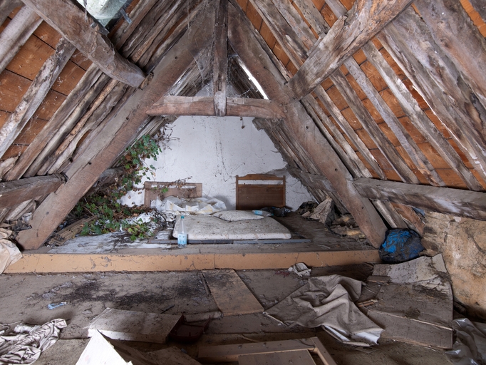 Tréguier, 13 rue Colvestre : manoir urbain dit "Maison des Trois Avocats", détail de la charpente de l'aile en retour d'équerre vers le sudImmatriculation