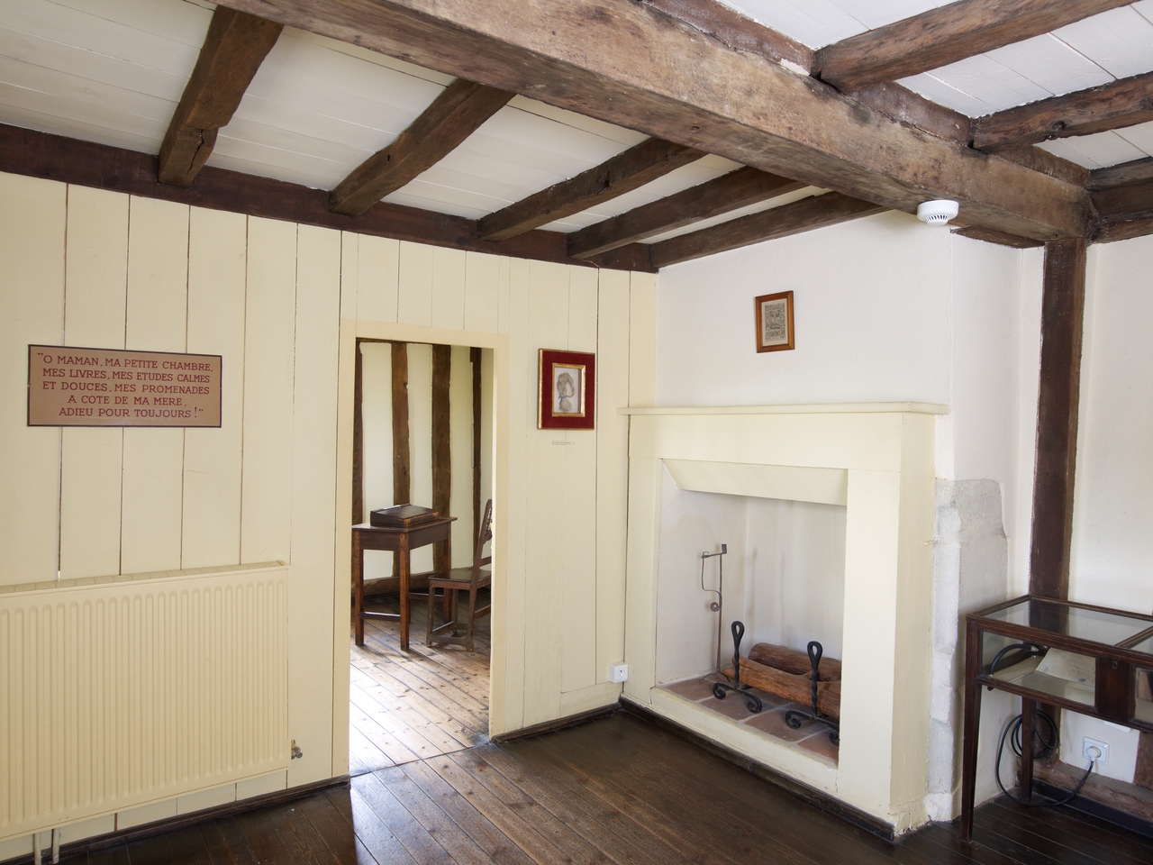 Pièce haute de la tour d'escalier partitionnée par une cloison en bois au 19e siècle. Cheminée du 17e siècle boisée au 19e siècleImmatriculation