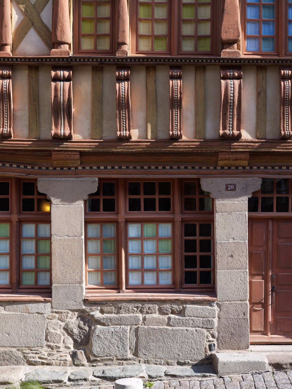 Façade nord. Détail du rez-de-chaussée sur piliers de pierreImmatriculation