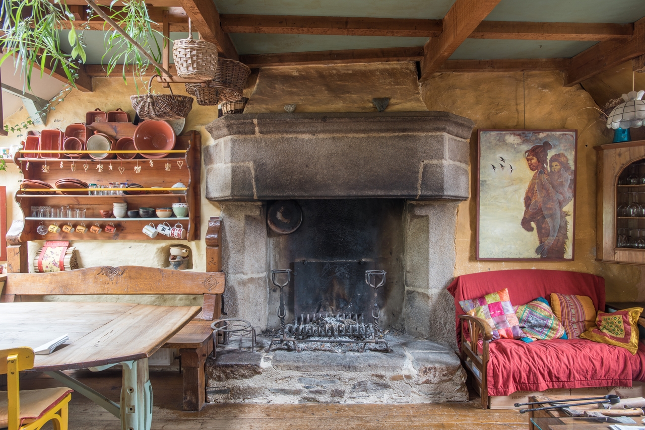 Salle de l'étage. Pignon sud. Cheminée. Vue généraleImmatriculation