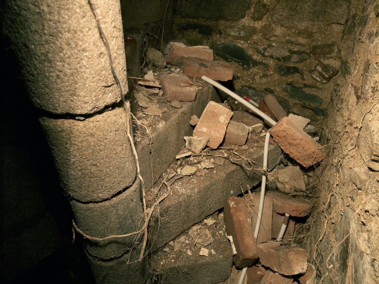 Sous-sol. Angle sud. Escalier d'accès à la cour voisine, intégré au gros oeuvre du mur sudImmatriculation