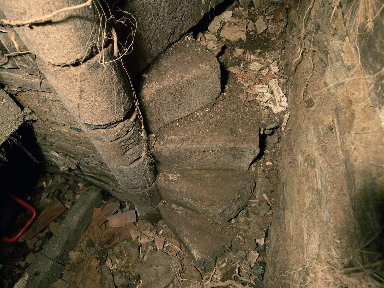 Sous-sol. Angle sud. Escalier d'accès à la cour voisine, intégré au gros oeuvre du mur sudImmatriculation