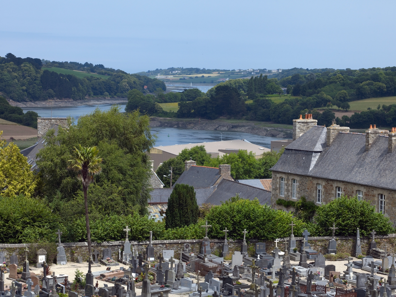 Tréguier : cimetière Saint-Fiacre depuis depuis le palais épiscopal aujourd'hui mairie et bibliothèque. En arrière plan : la rivière de TréguierImmatriculation