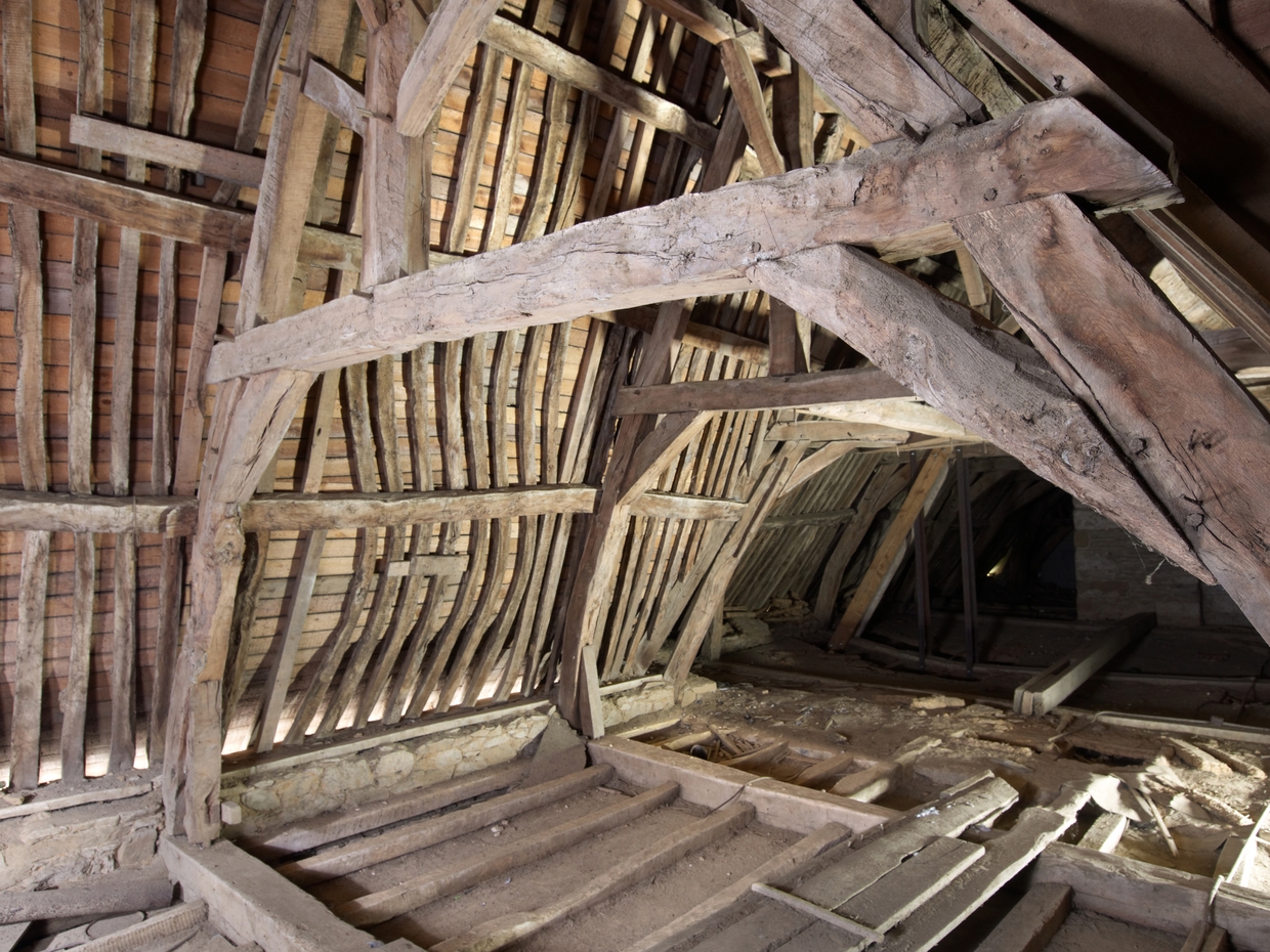 Tréguier, boulevard Anatole Le Braz : palais épiscopal aujourd'hui mairie et bibliothèque, aile nord-ouest, étage de comble, charpenteImmatriculation