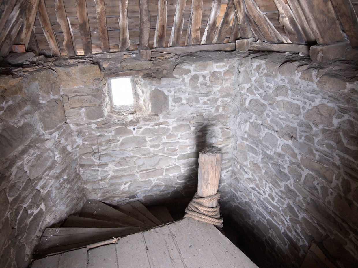 Tréguier, 26 rue Colvestre : maison à pan de bois, palier donnant accès à l'étage de combleImmatriculation