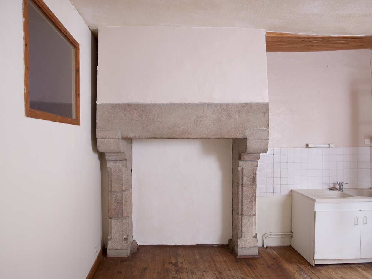 Tréguier, 26 rue Colvestre : maison à pan de bois, appartement, détail de la cheminéeImmatriculation