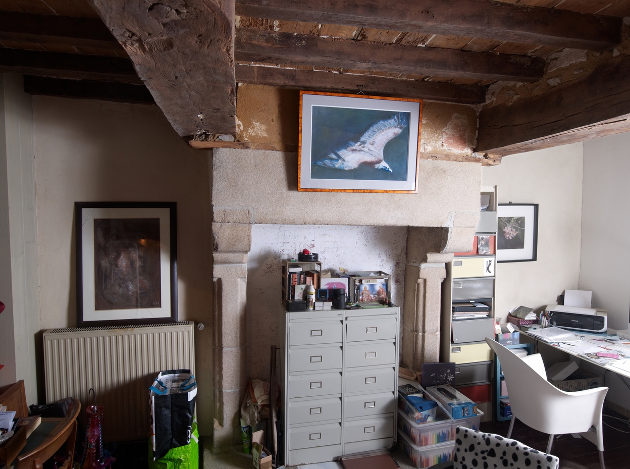 Tréguier, 11 rue Colvestre : maison dite "Hôtel de Tournemine", salle donnant sur la cour, cheminée du pignon estImmatriculation