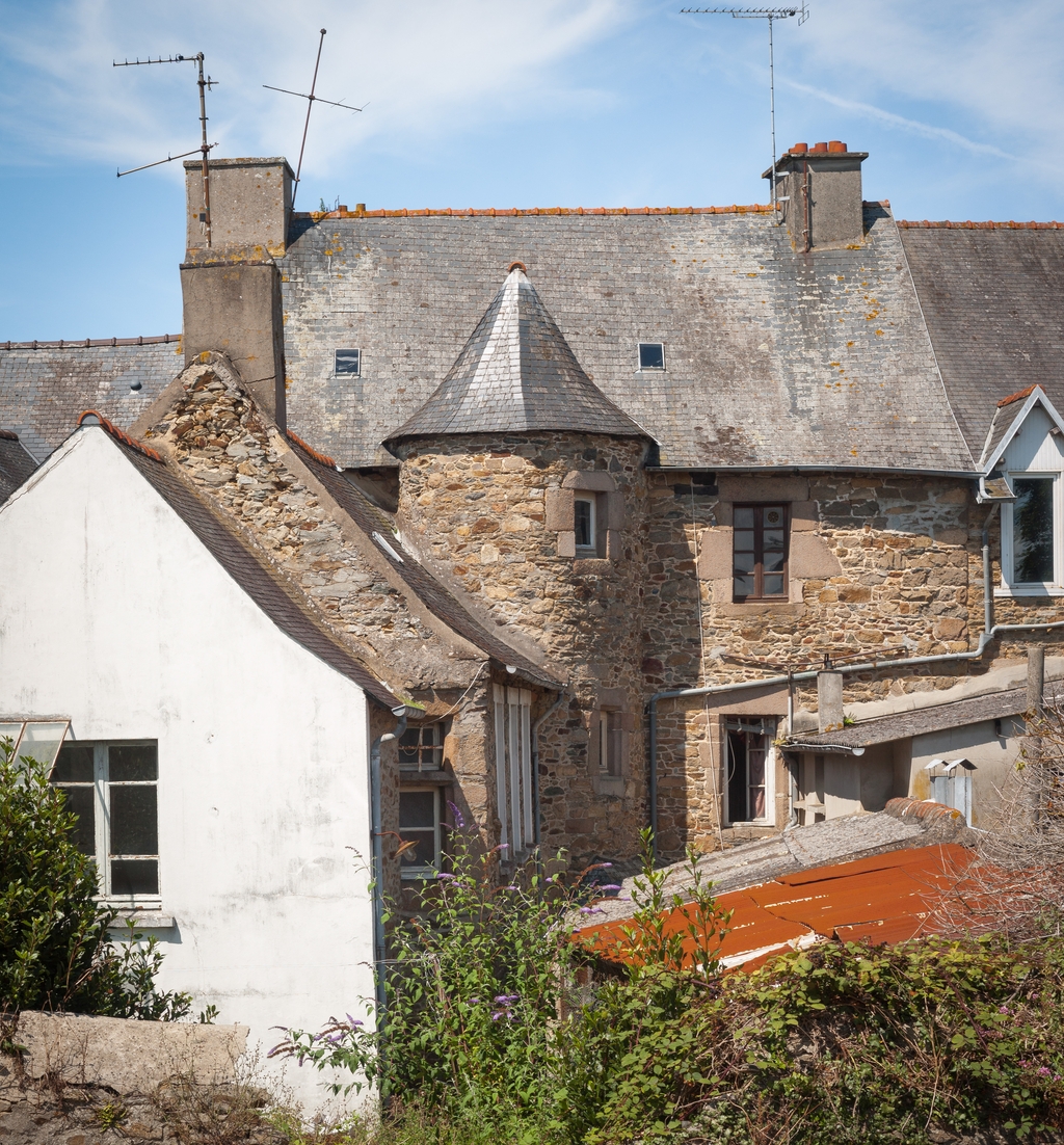 Tréguier, 15 rue Colvestre : maison à pan de bois rouge, élévation sur cour, tour d'escalier et dépendancesImmatriculation