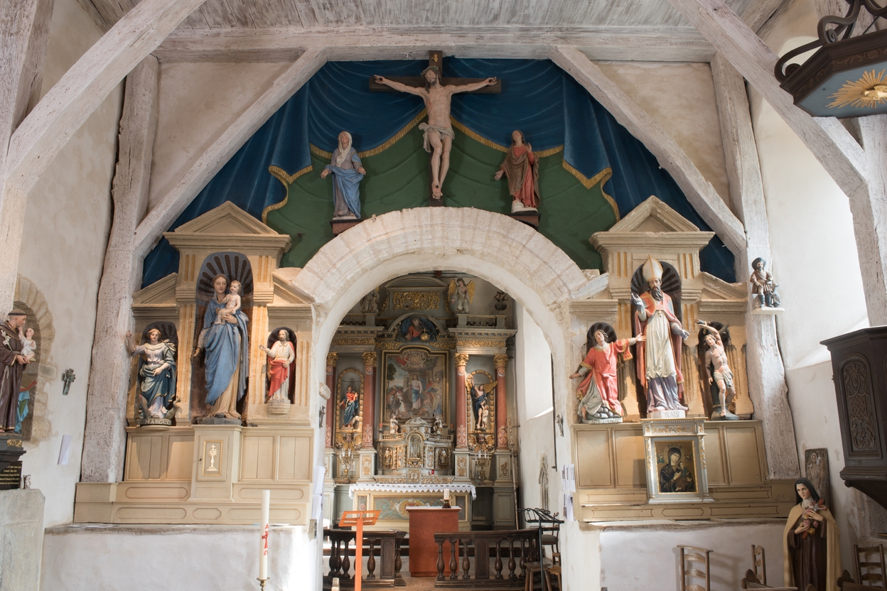 Retables latéraux; structure en bois supportant le clocher, état après restaurationImmatriculation