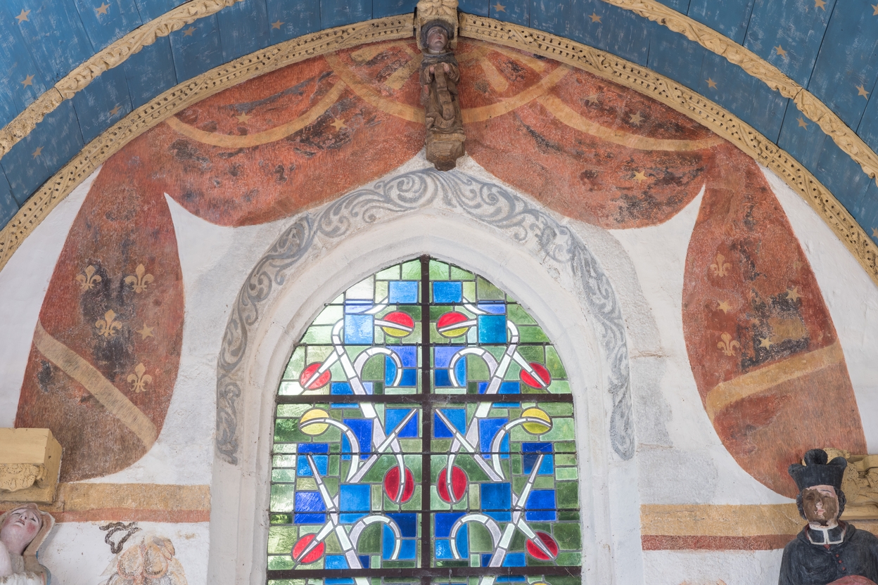 Chapelle. Intérieur. Mur du choeur. Détail du baldaquin peint en trompe-l'oeilImmatriculation