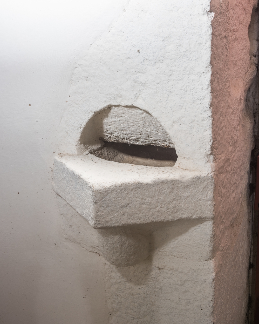 Chapelle. Mur sud. Intérieur. Détail du bénitierImmatriculation