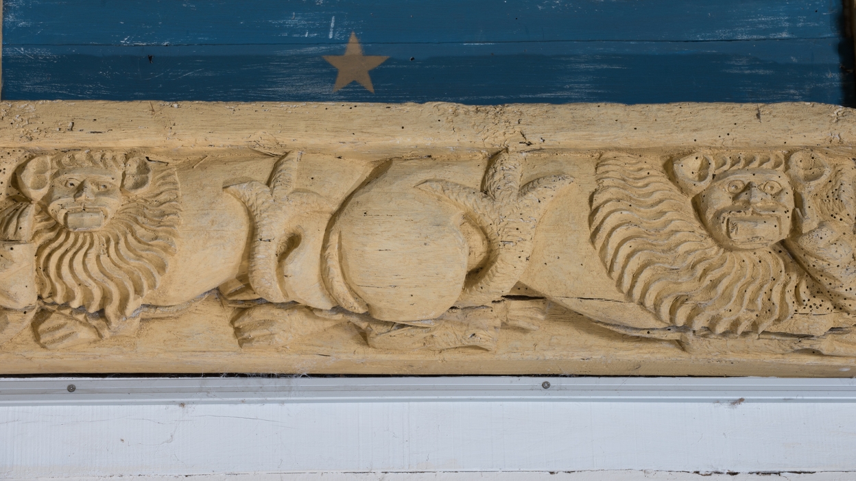 Sablières : lions adossés couchés, queue fourchue.Immatriculation