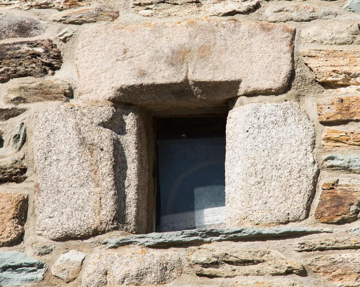 Façade Sud, fenêtre de la tour d'escalier. Motif d'accolade et cavetImmatriculation