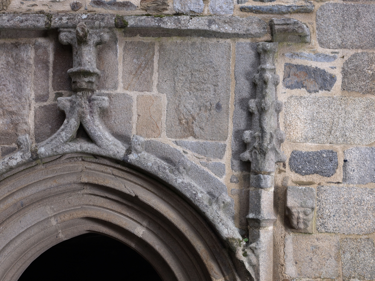 Corps de logis. Elévation sud sur rue. Détail du portail gothique avec emplacement d'armoiriesImmatriculation
