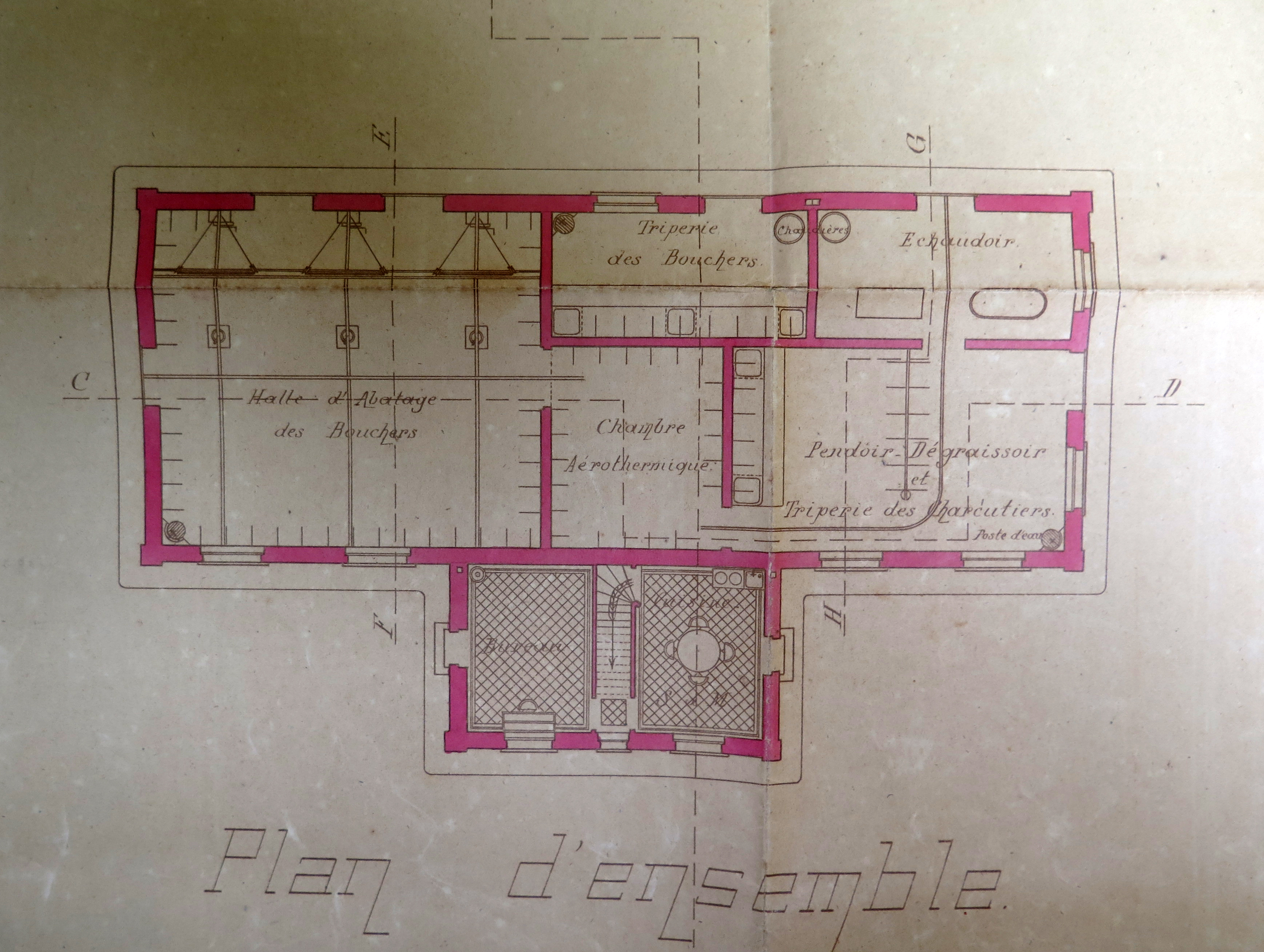 Tréguier, rue du Guindy : détail du plan d'ensemble de l'abattoir de la ville de Tréguier, 1er novembre 1907 (Archives municipales de Tréguier, 1M9)Immatriculation