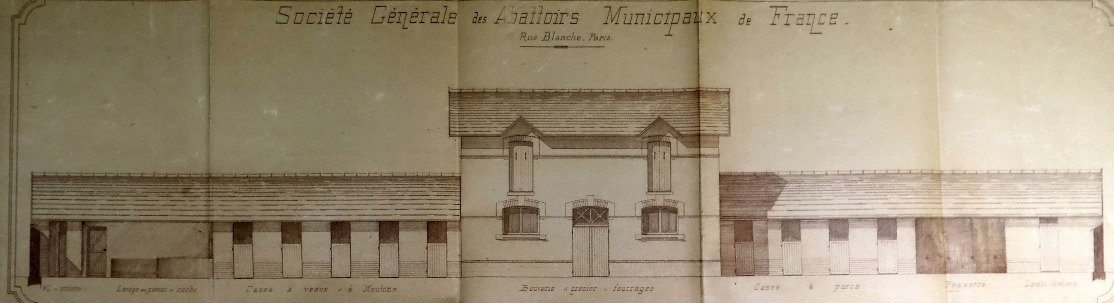 Tréguier, rue du Guindy : élévation de l'abattoir de la ville de Tréguier, 1er novembre 1907 (Archives municipales de Tréguier, 4F15)-