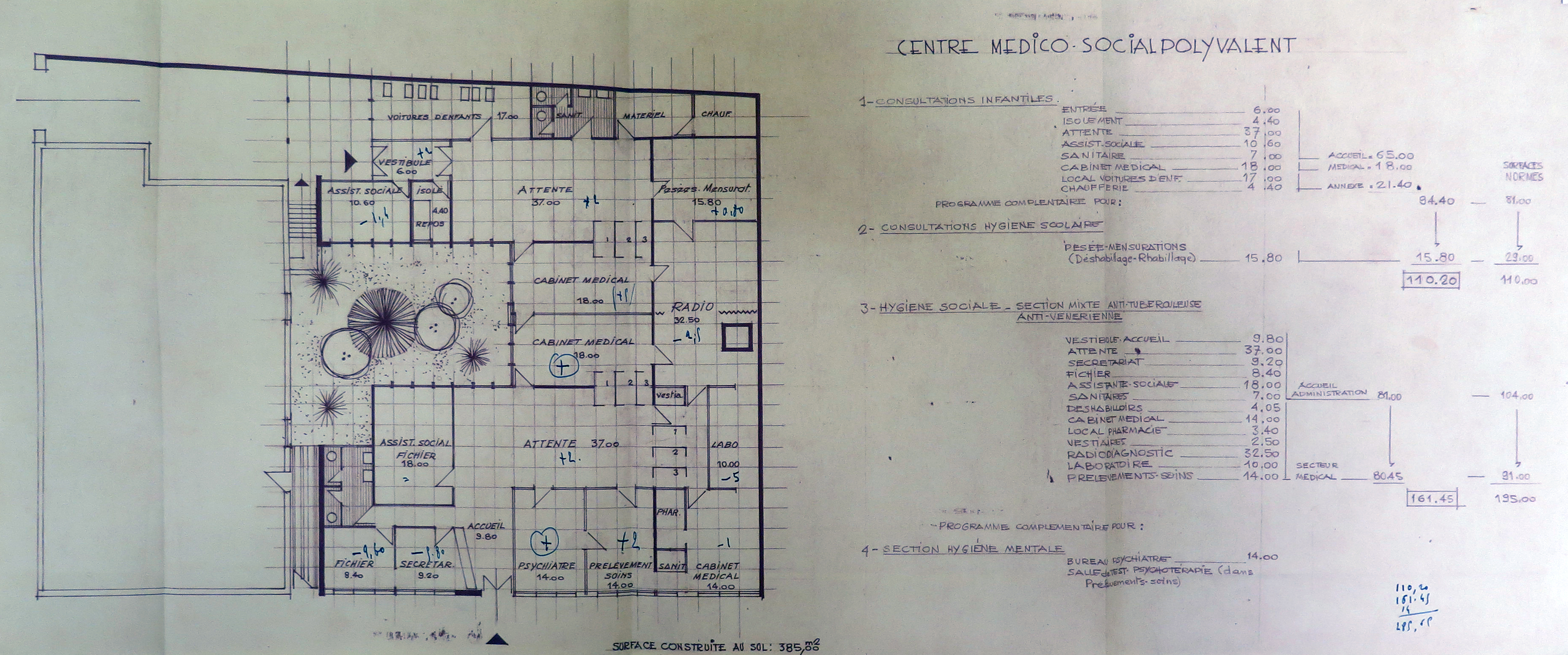 Tréguier, rue Pasteur : plan du centre médico-social par l'architecte André Hauvespre, vers 1969-1970 (Archives municipales de Tréguier, 6M4)Immatriculation