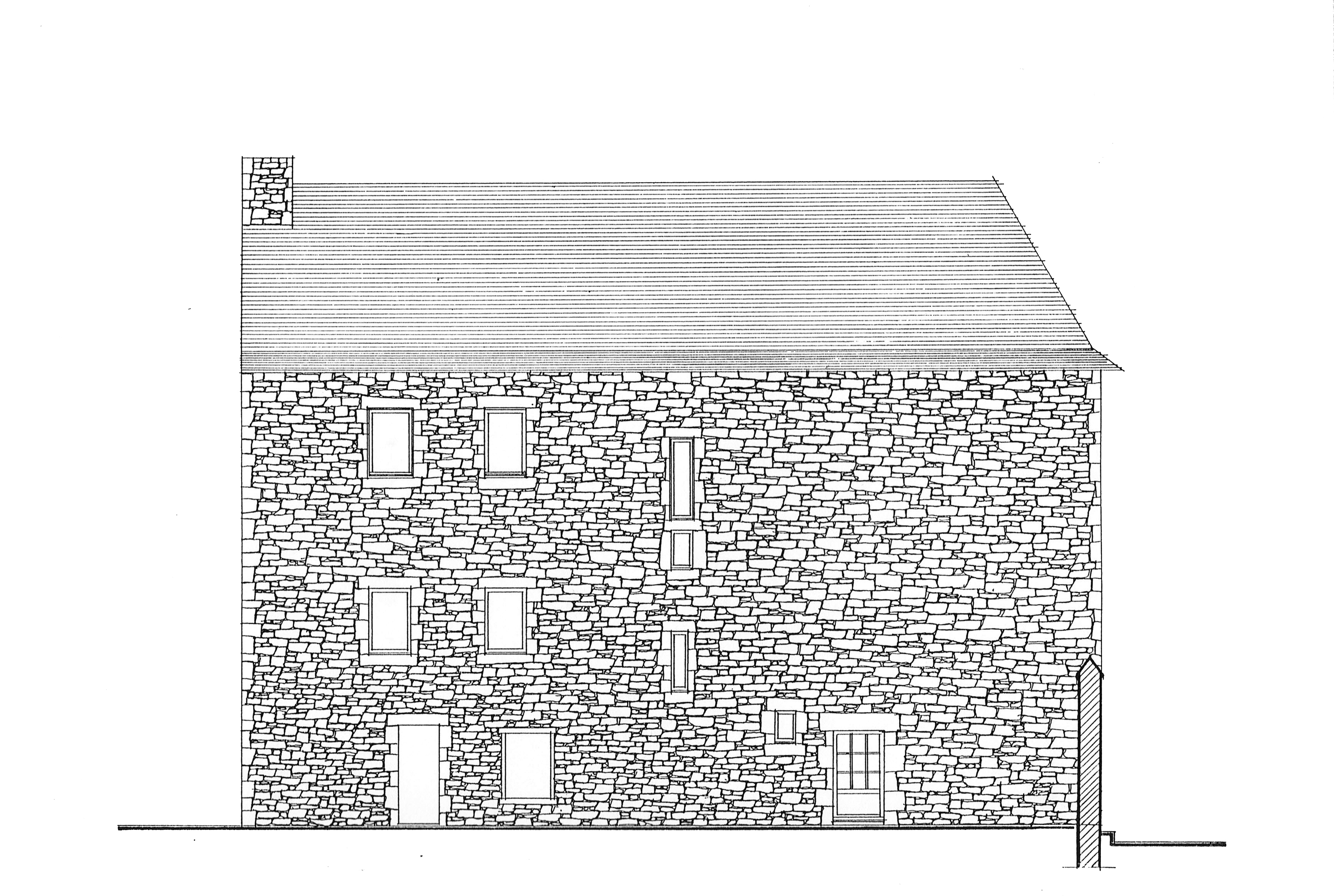 Tréguier, 22 rue Colvestre : manoir urbain, relevé de la façade ouest (dessin : Daniel Leloup, architecte)Immatriculation
