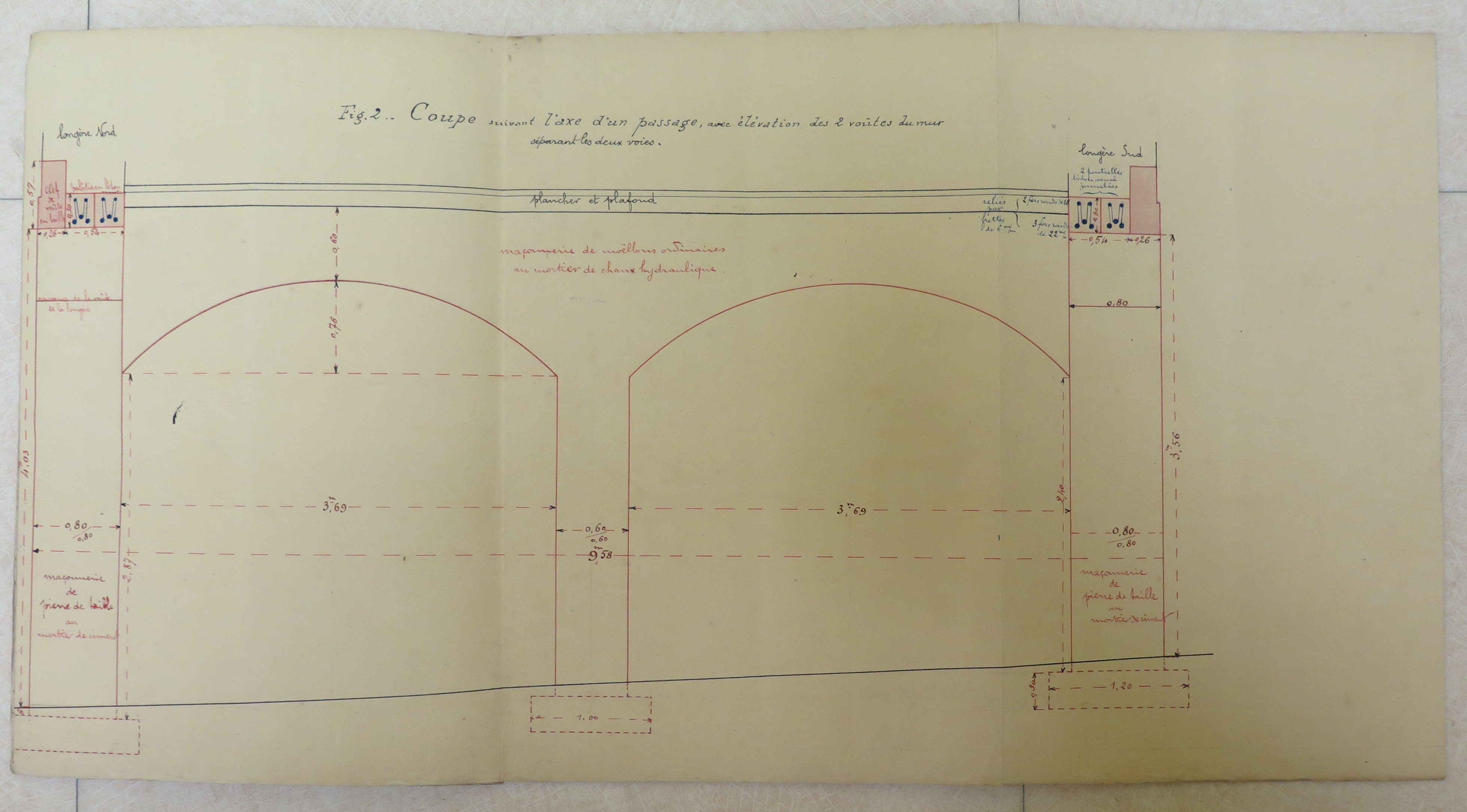 Tréguier : coupe suivant l'axe du passage, avec élévation des 2 voûtes du mur séparant les deux voies, 19 août 1920 (Archives communales de Tréguier : 2M2)Immatriculation