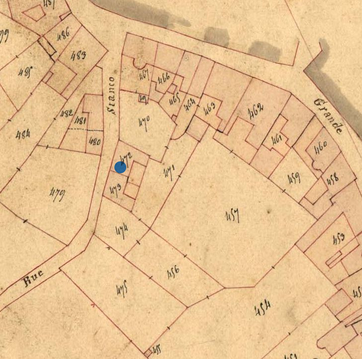 Le 3 rue stanco en 1834. Extrait du cadastre ancien, section A2 (A.D. 22, série 3 P 367/1)Immatriculation