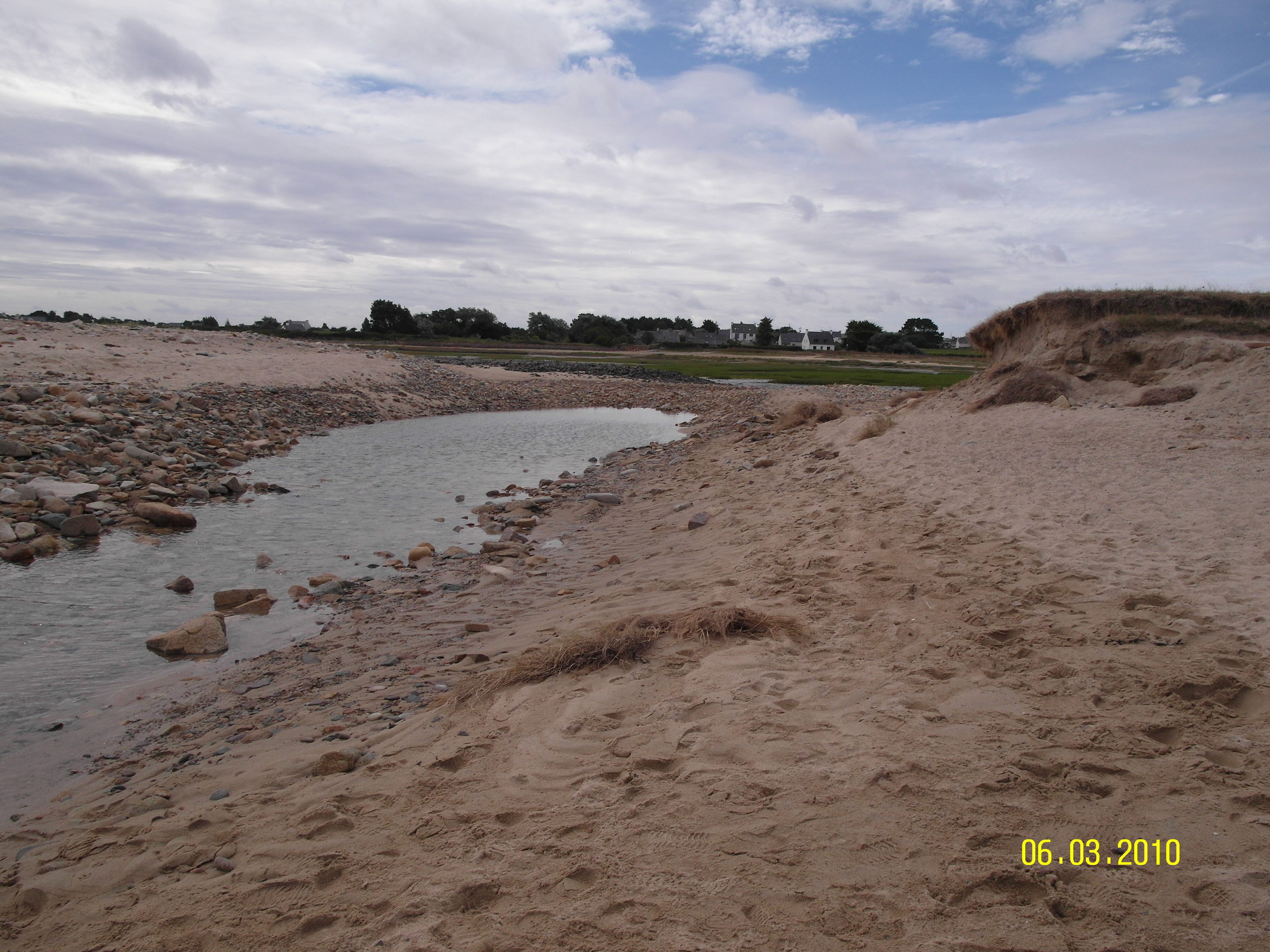 Vue de la brêche du sillon qui s'élargit au gré des tempêtes et du recul de la duneImmatriculation