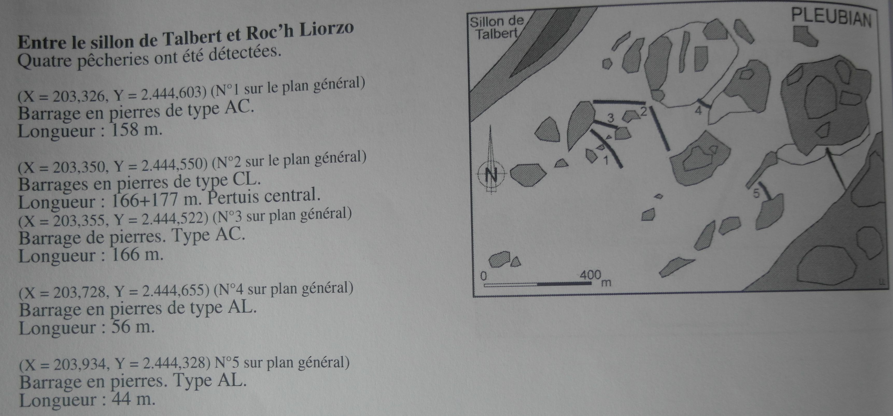 Schéma des 4 pêcheries situées entre le Sillon de Talbert et Roc'h Liorzo (Langouët)Immatriculation