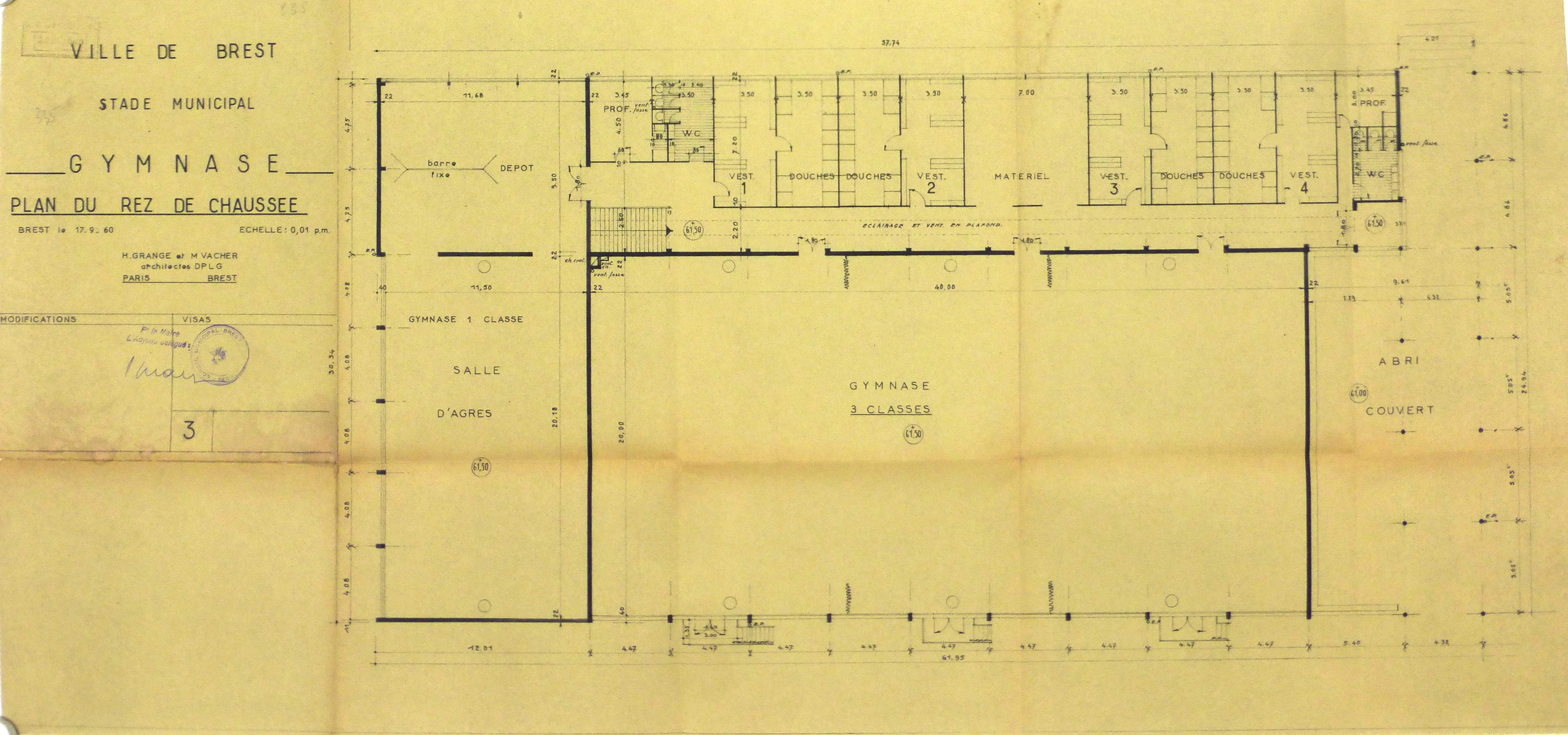 AN : 19771564/12. Plan du rez-de-chaussée. H. Grangé et M. Vacher, 1960.
