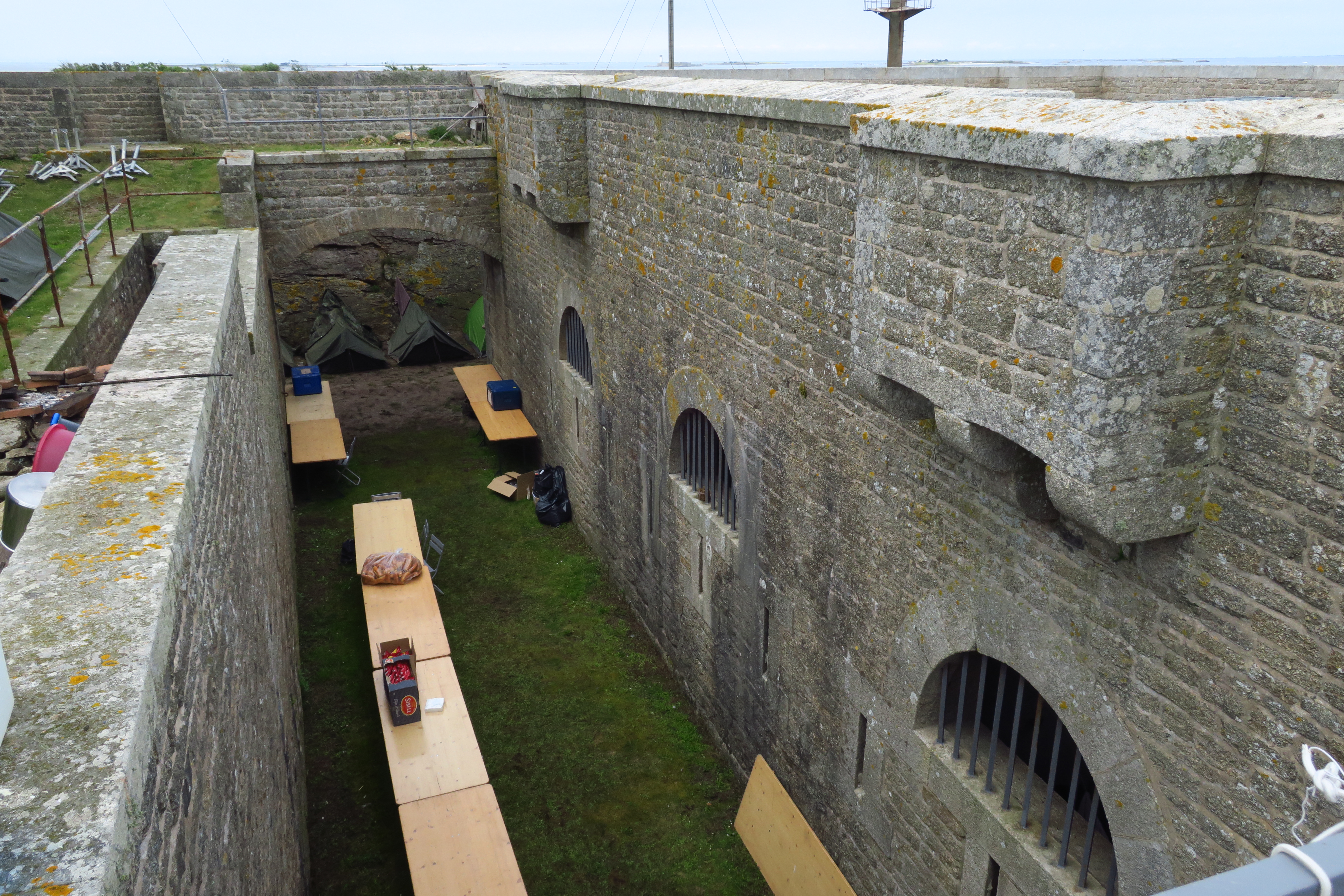 Archipel de Glénan, batterie de Penfret, corps de garde crénelé, façade sud.Immatriculation
