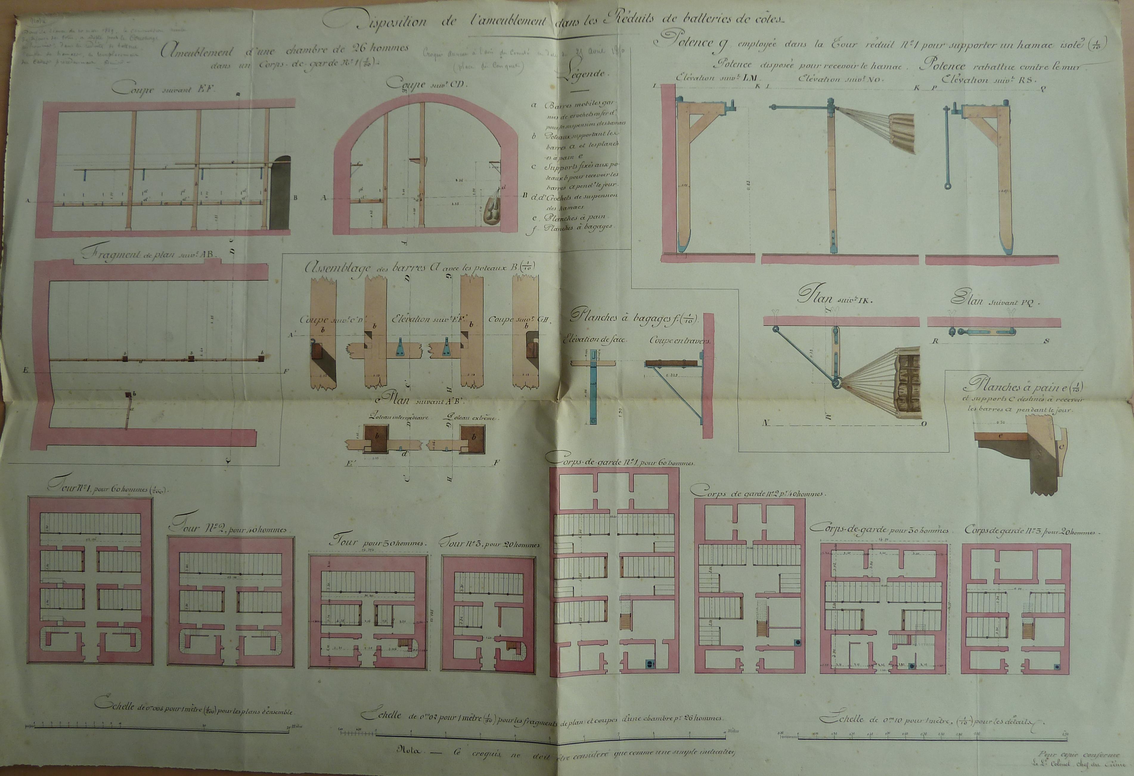 1 VK 139. Disposition de l'ameublement dans les réduits de batteries de côtes, 1850.Immatriculation
