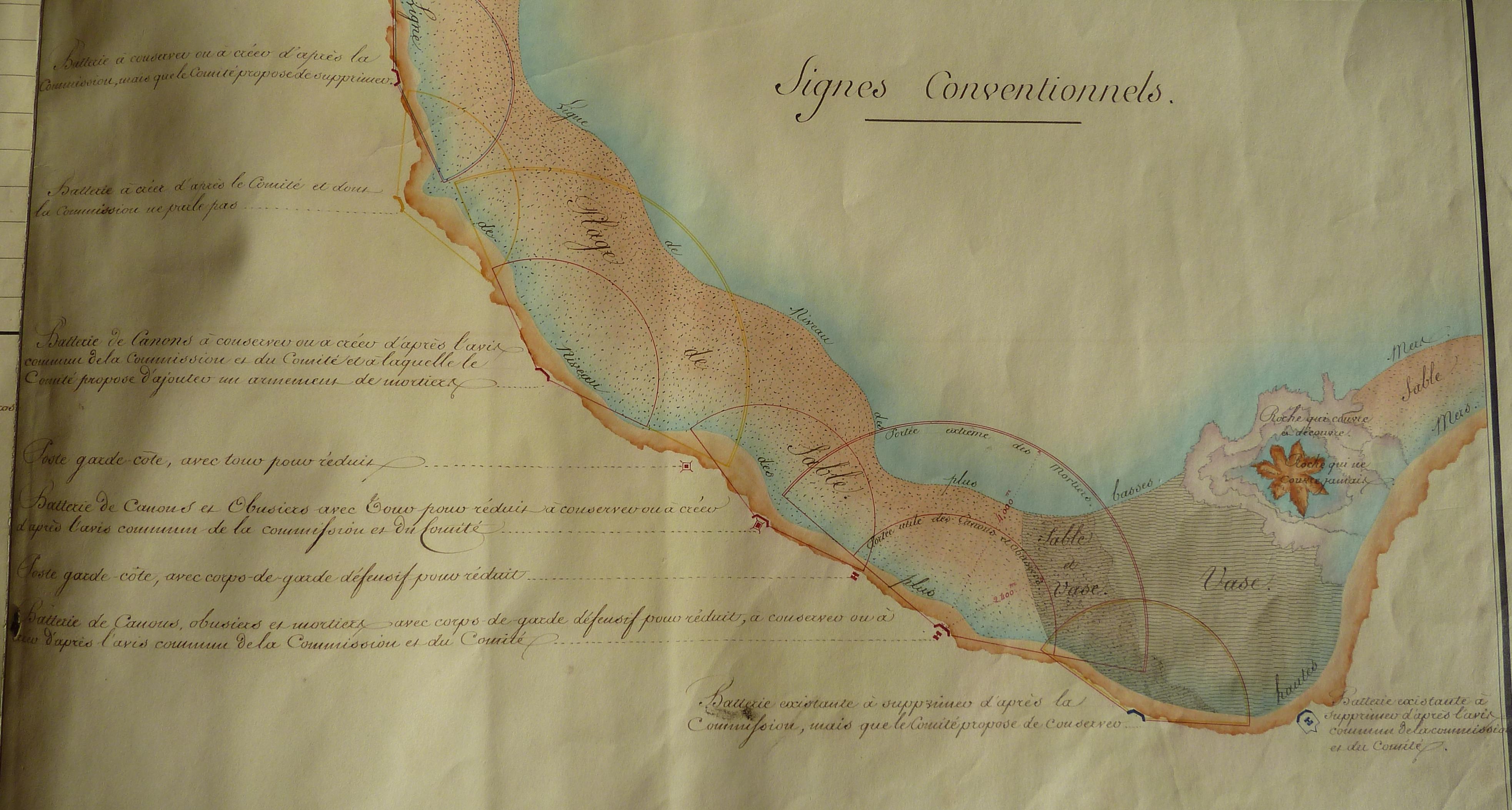 Service historique de la Défense, département Armée de Terre, Vincennes. Bibliothèque du Génie ; Atlas 348 : Défense des côtes, avis du Comité des fortifications du 7 novembre 1844 sur le travail de la commission établie en 1841 tome 4, Lorient.
