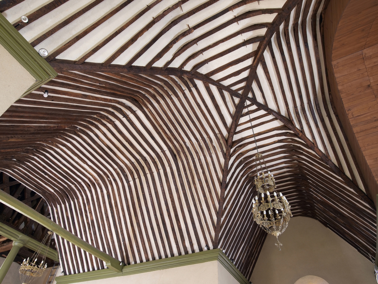 Eglise Saint-Melaine, vue intérieure de la charpente de la nef et de la croisée du transeptImmatriculation