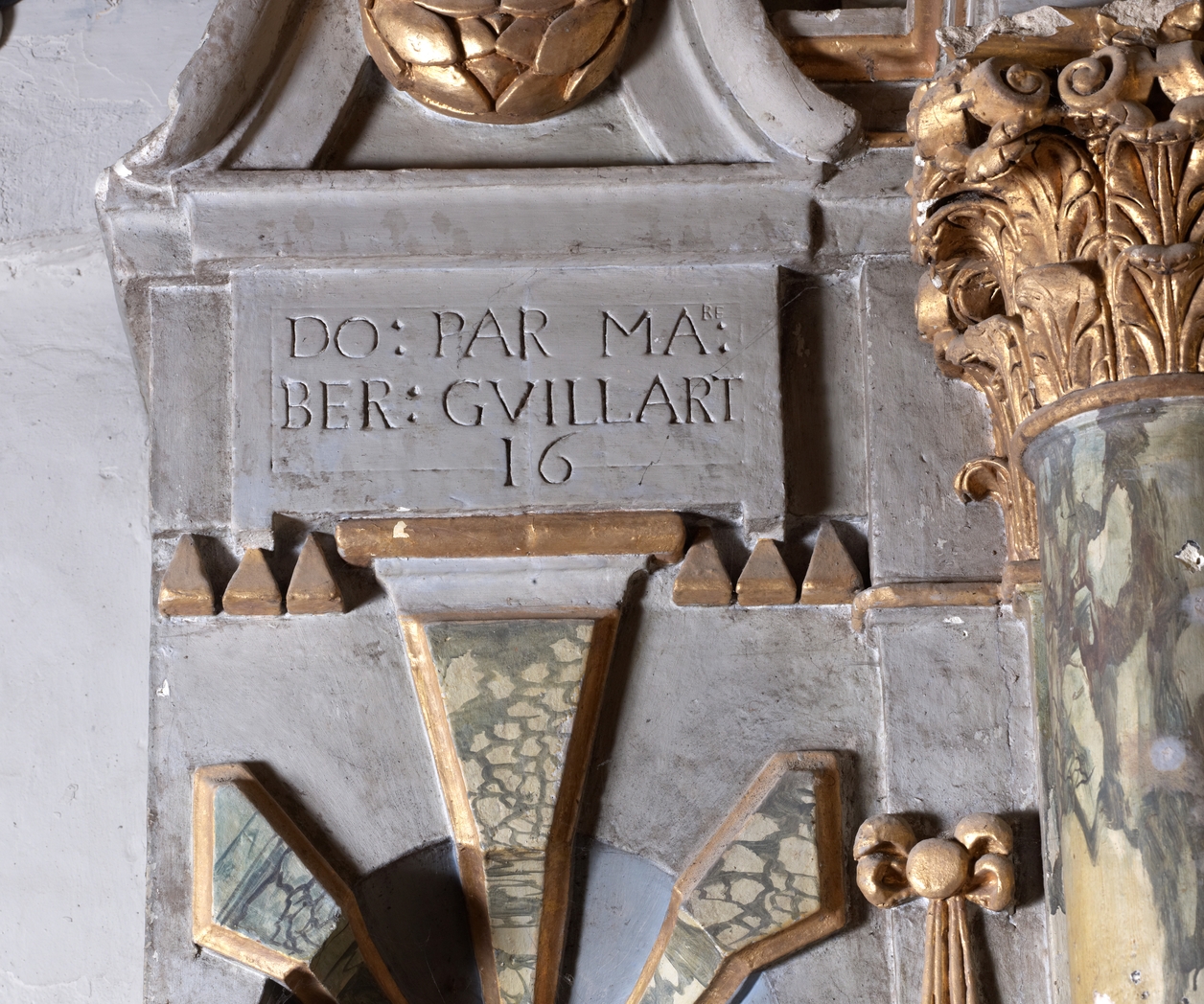 Bras Sud du transept : détail inscription retable du RosaireImmatriculation