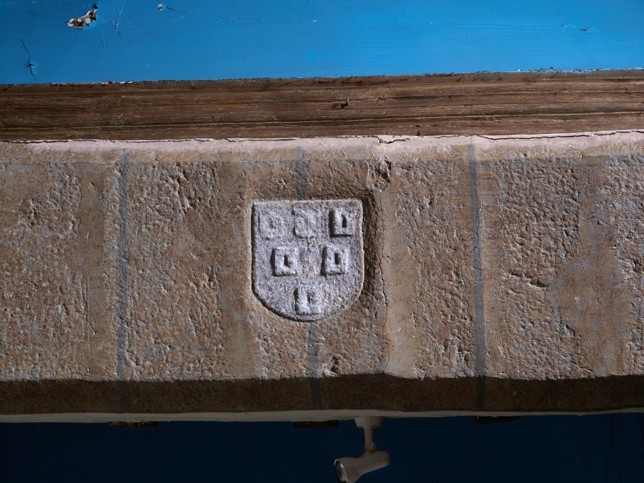 Arcace surbaissée entre le choeur et la chapelle sud : détail de l'armoirie des Huchet de CintréImmatriculation