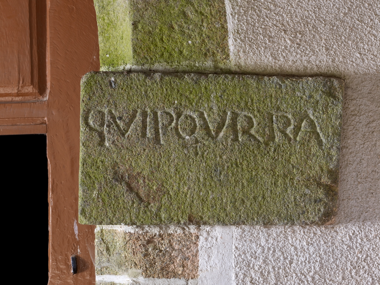 Porche Ouest : détail de l'inscrption "Face mieux qui pourra"Immatriculation