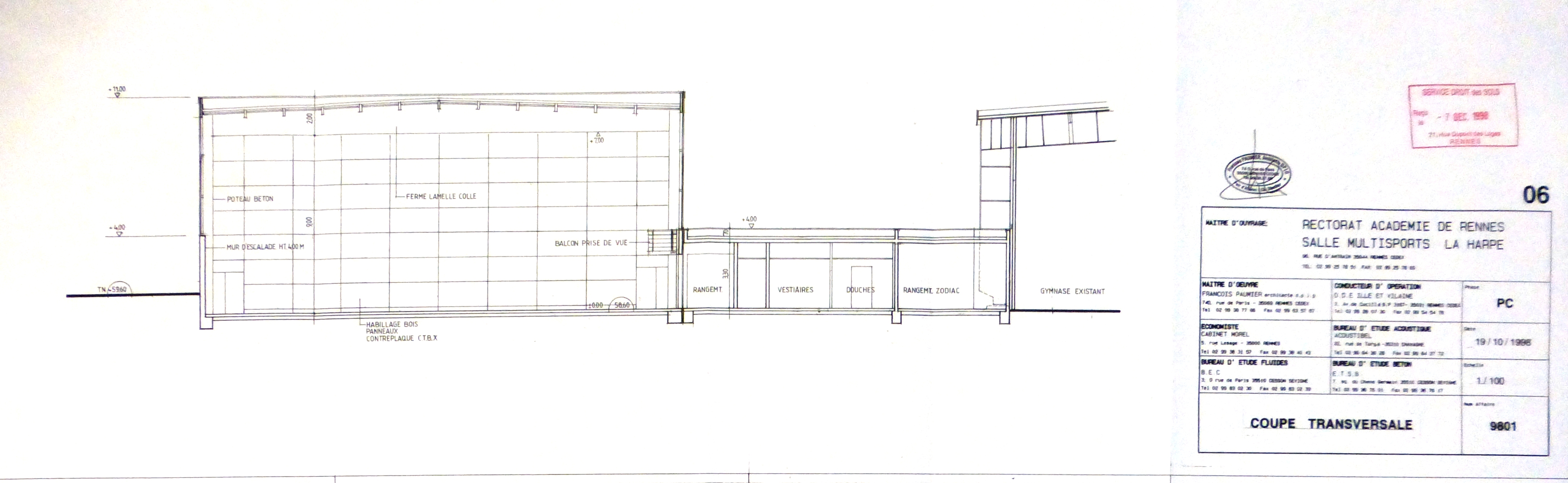 AC Rennes : 1258 W 2. Coupe transversale. F. Paumier, 1999.