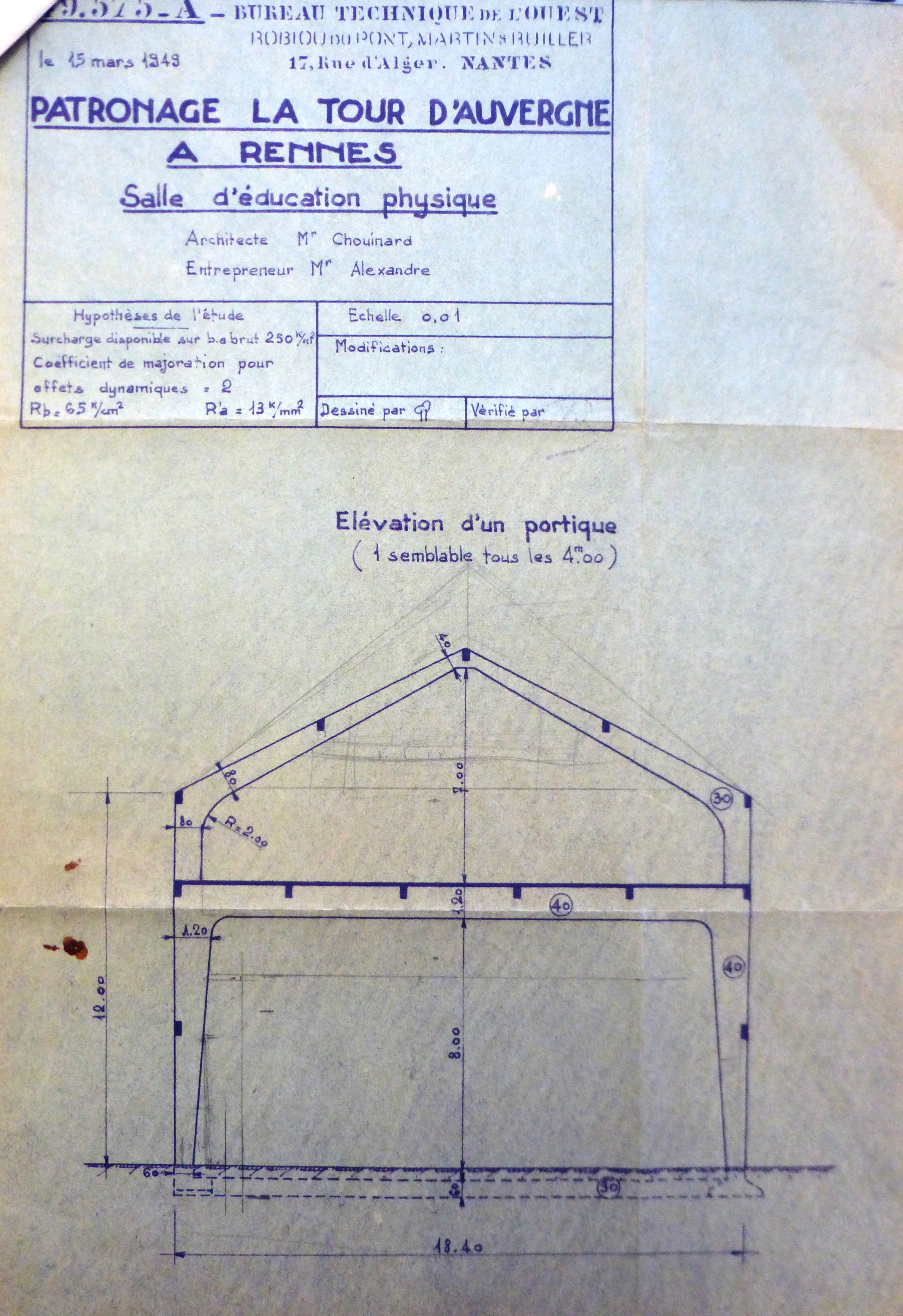 A.C. Rennes : 18 Z 1056. Elévation d'un portique. L. Chouinard, 1949.