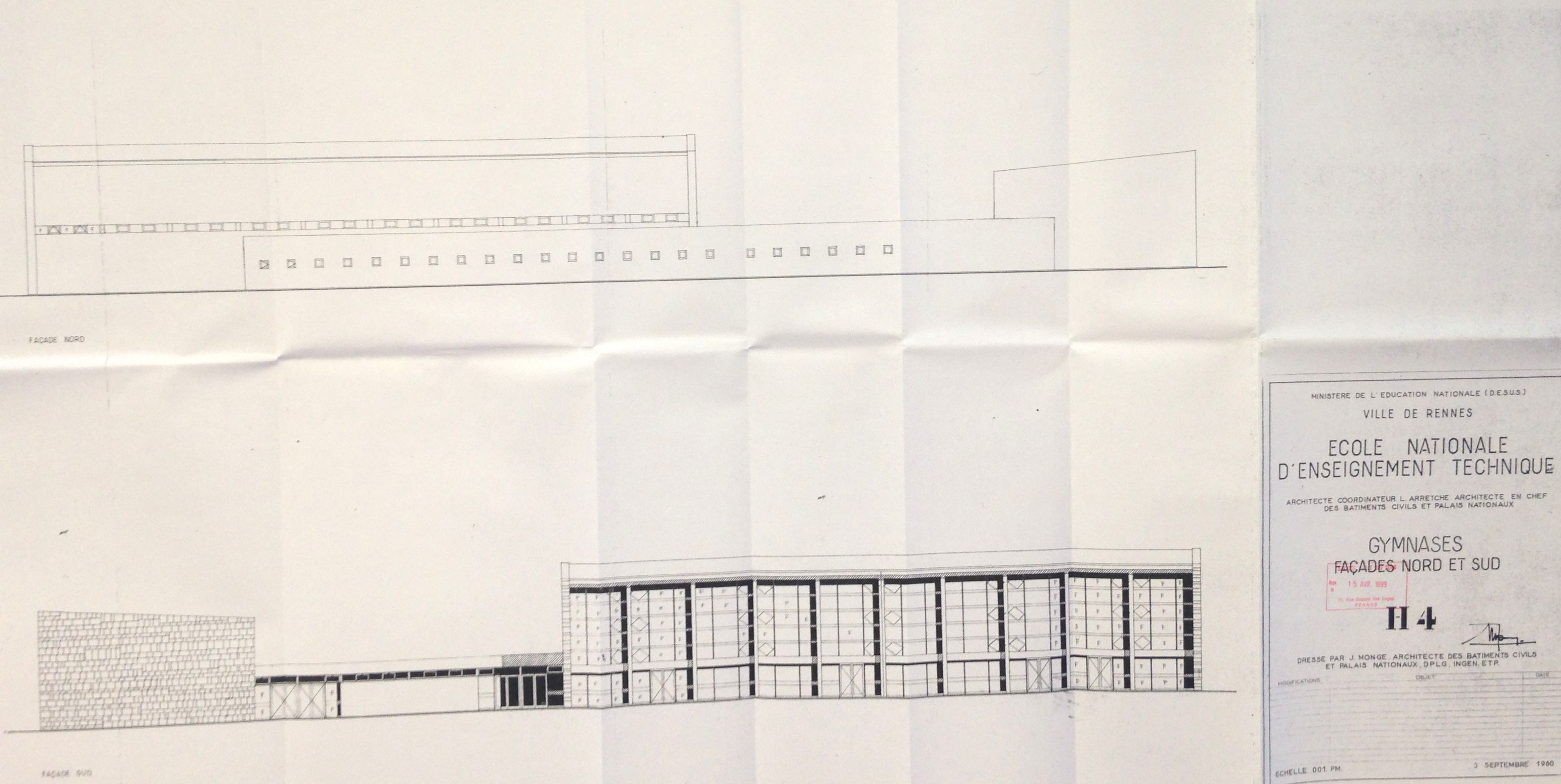 AC Rennes : 1309 W 50. Façades nord et sud. J. Monge, 1960.