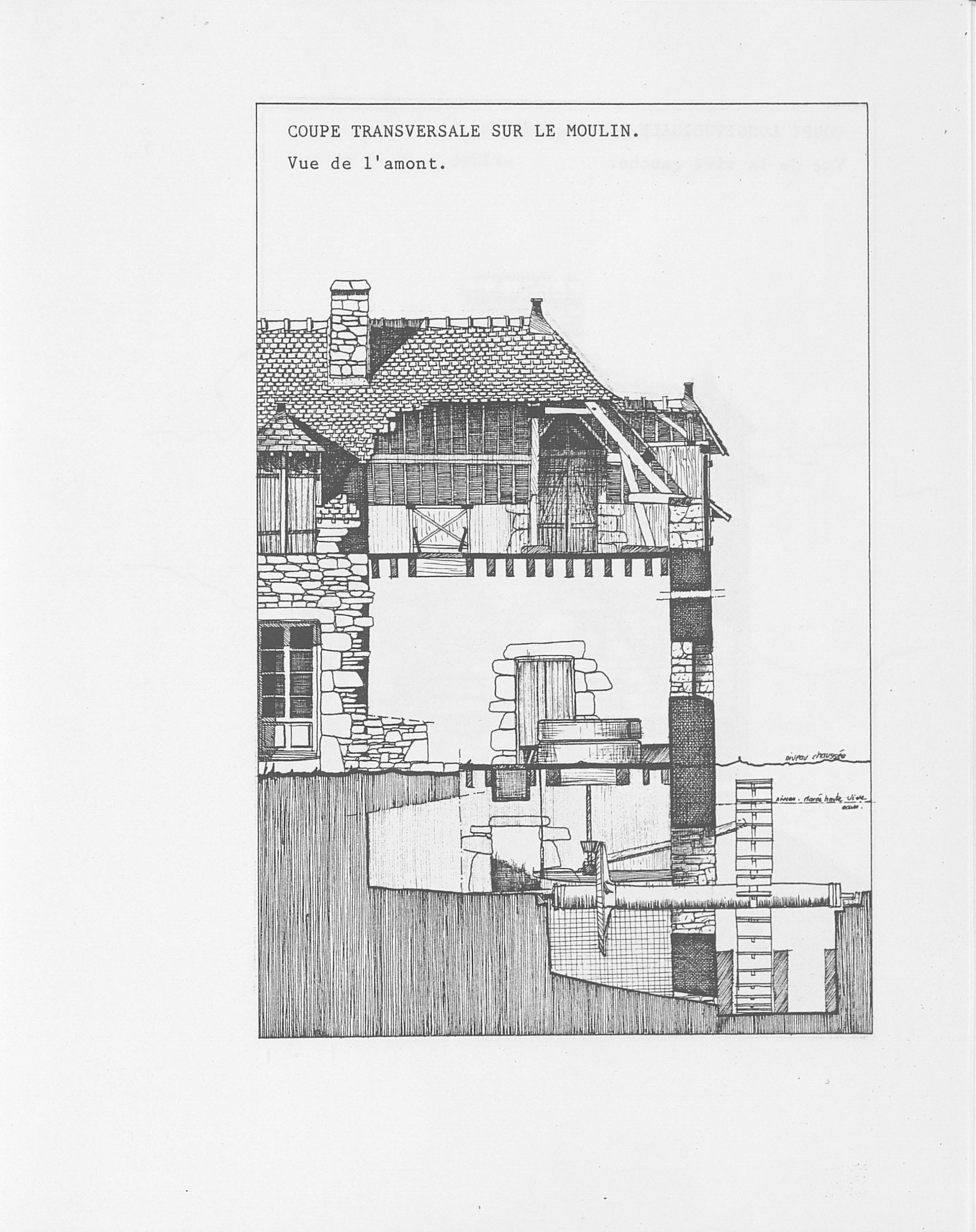 Dessin J-L. Rousseau, TPFE Ecole Nationale Supérieure d'Architecture de Nantes (1985), Coupe longitudinale vue amontImmatriculation