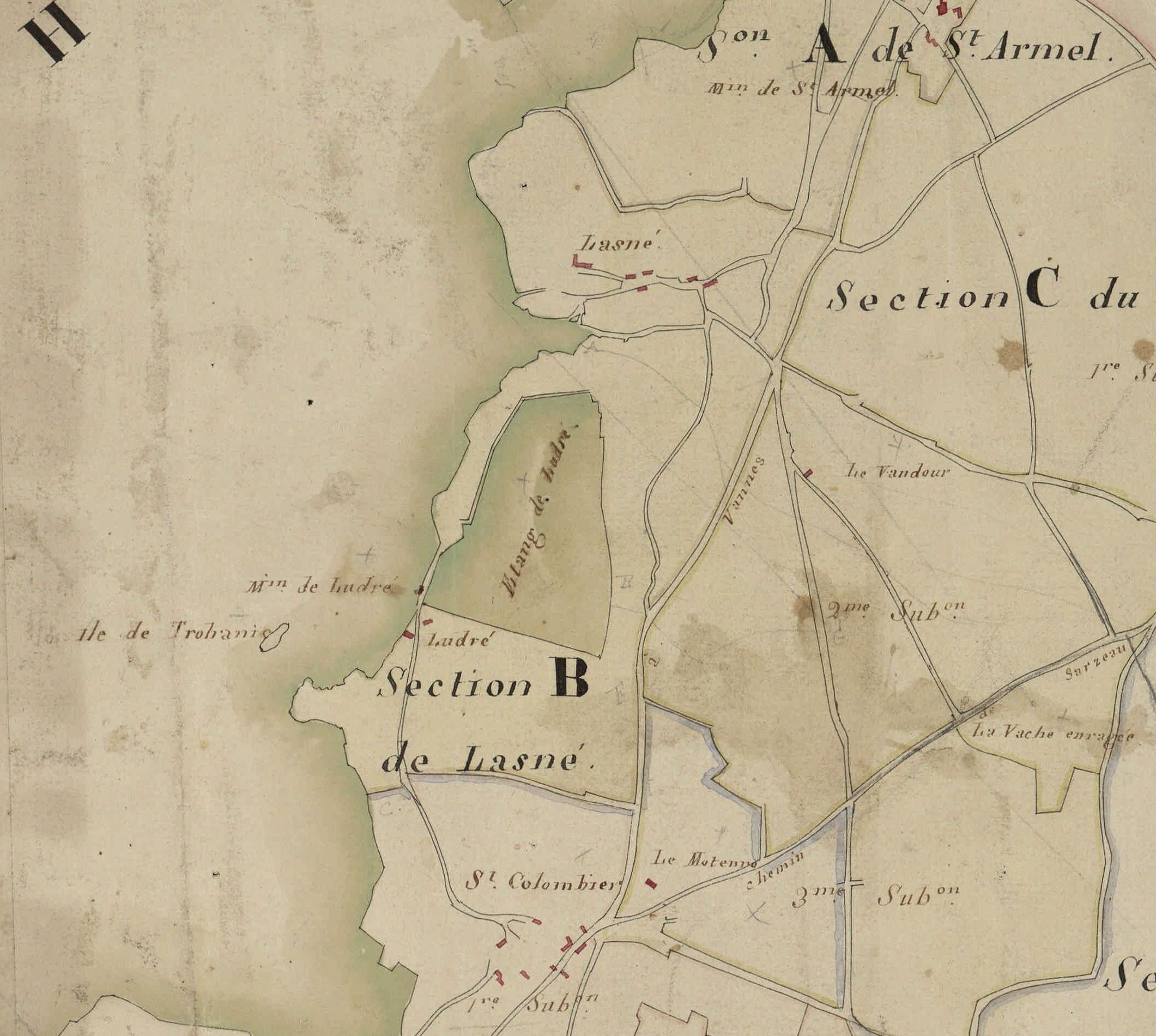 Cadastre de 1828 (Sarzeau), Moulin du Ludré et son étang, 3 P 282/1 - Tableau d'assemblage, échelle 1/20 000 (10 mars 1828)Immatriculation