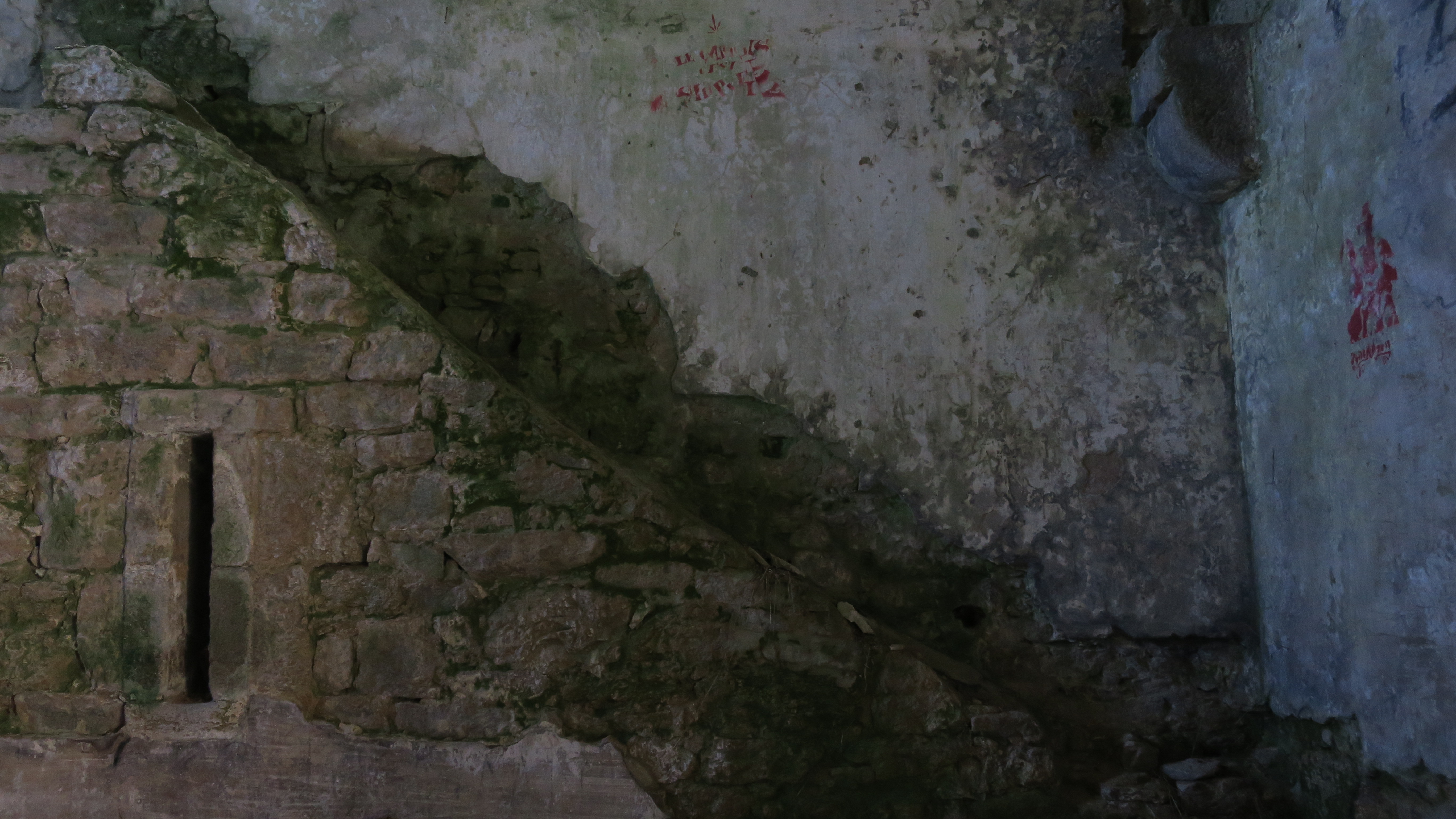 Hoedic, fort central, magasin à poudre, chambre de stockage, emplacement de l'escalier.Immatriculation