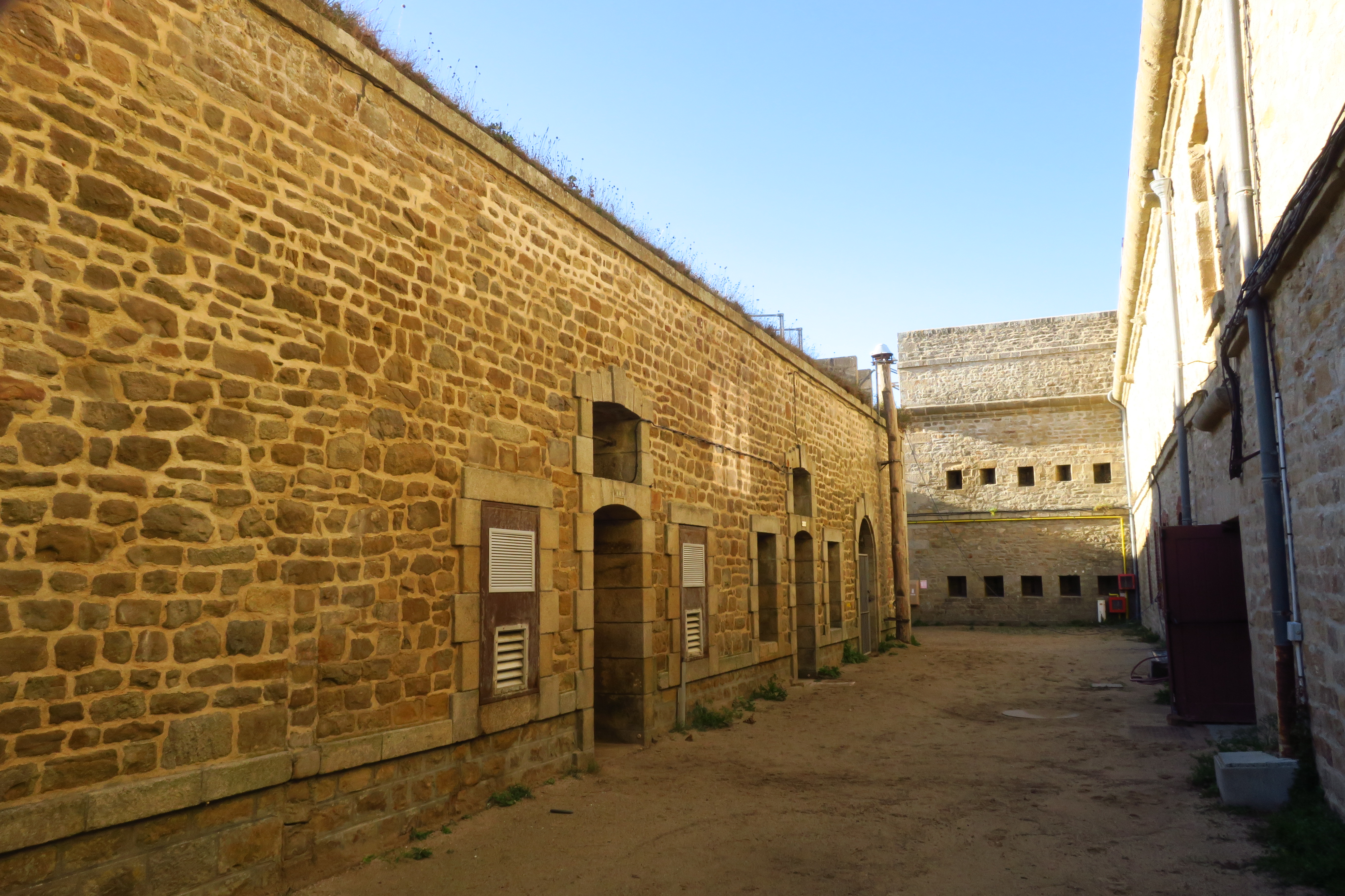 Saint-Pierre-Quiberon, fort de Penthièvre, abris des années 1880 dans le fossé de la caserne.Immatriculation