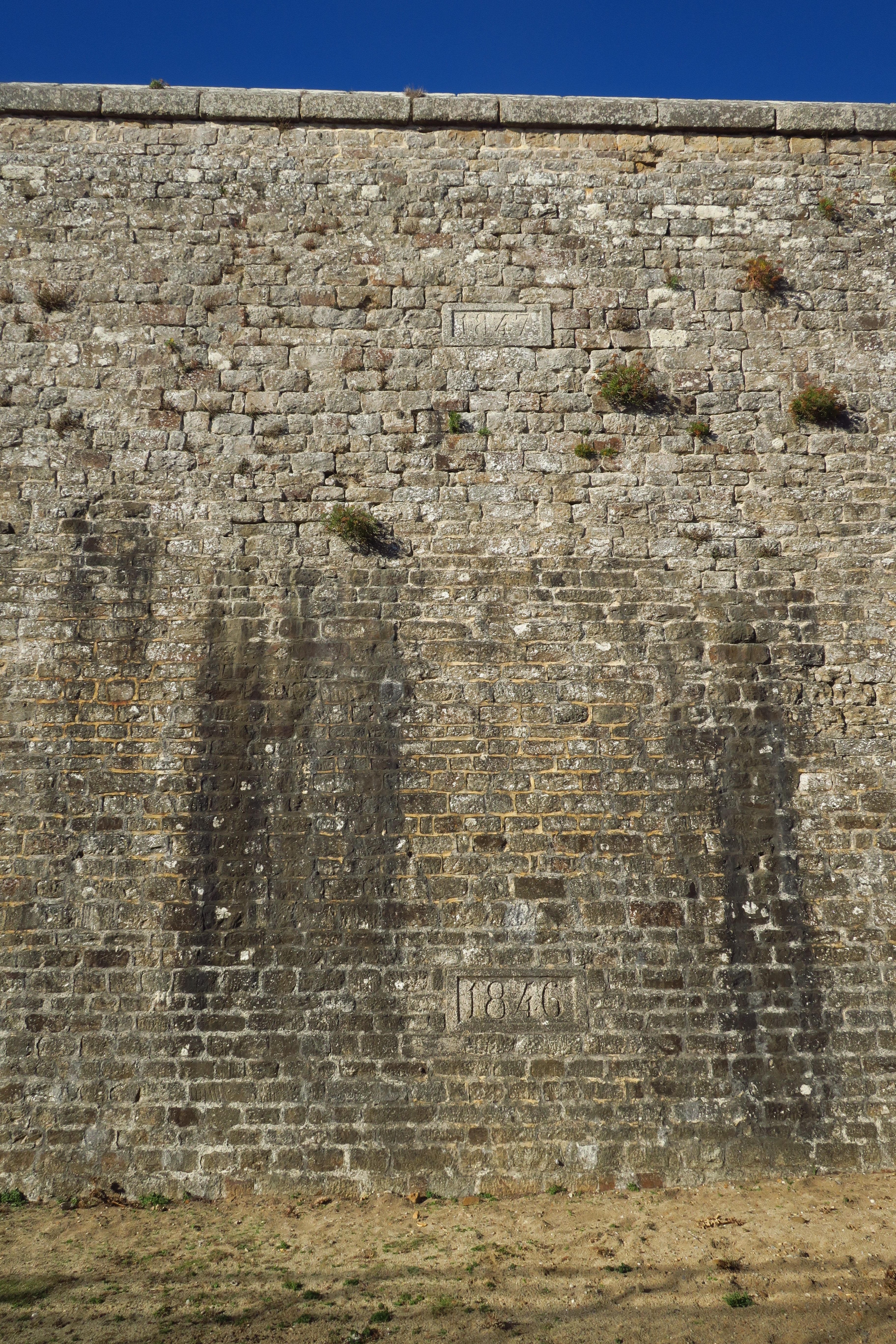 Saint-Pierre-Quiberon, fort de Penthièvre, enceinte, escarpe de la face est du redan.Immatriculation