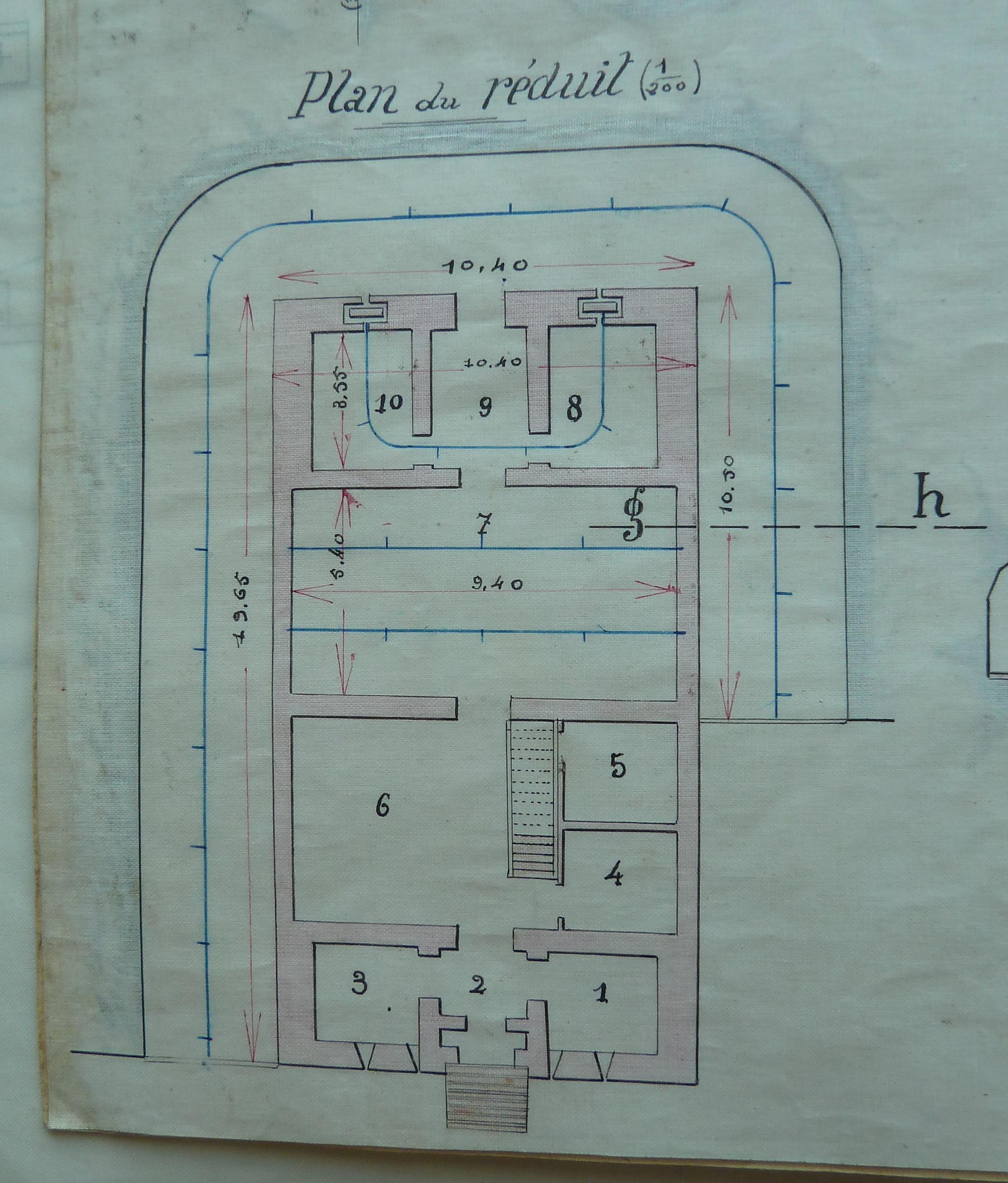 Service historique de la Défense, Département Armée de Terre, Vincennes. Archives de la Guerre, Troisième République ; Sous-série 7 N, Etat-Major de l'Armée : 7 N 1905, Défense des fronts de mer, dossiers de l’inspection générale permanente d’armement des côtes - Atlantique : pièces collectives, Fort Médoc, Fort Paté, La Rochelle, embouchure de laLoire, Lorient, Nantes, Quiberon, Rochefort, Iles d’Aix et d’Oléron, Saint-Nazaire (1878-1898), Iles de Groix, d’Ouessant et de Ré (1887-1907). Croquis joint au procès-verbal de conférence du 15 novembre 1894, emmagasinement des munitions dans la place de Lorient-Groix, batterie du Bas Grognon.