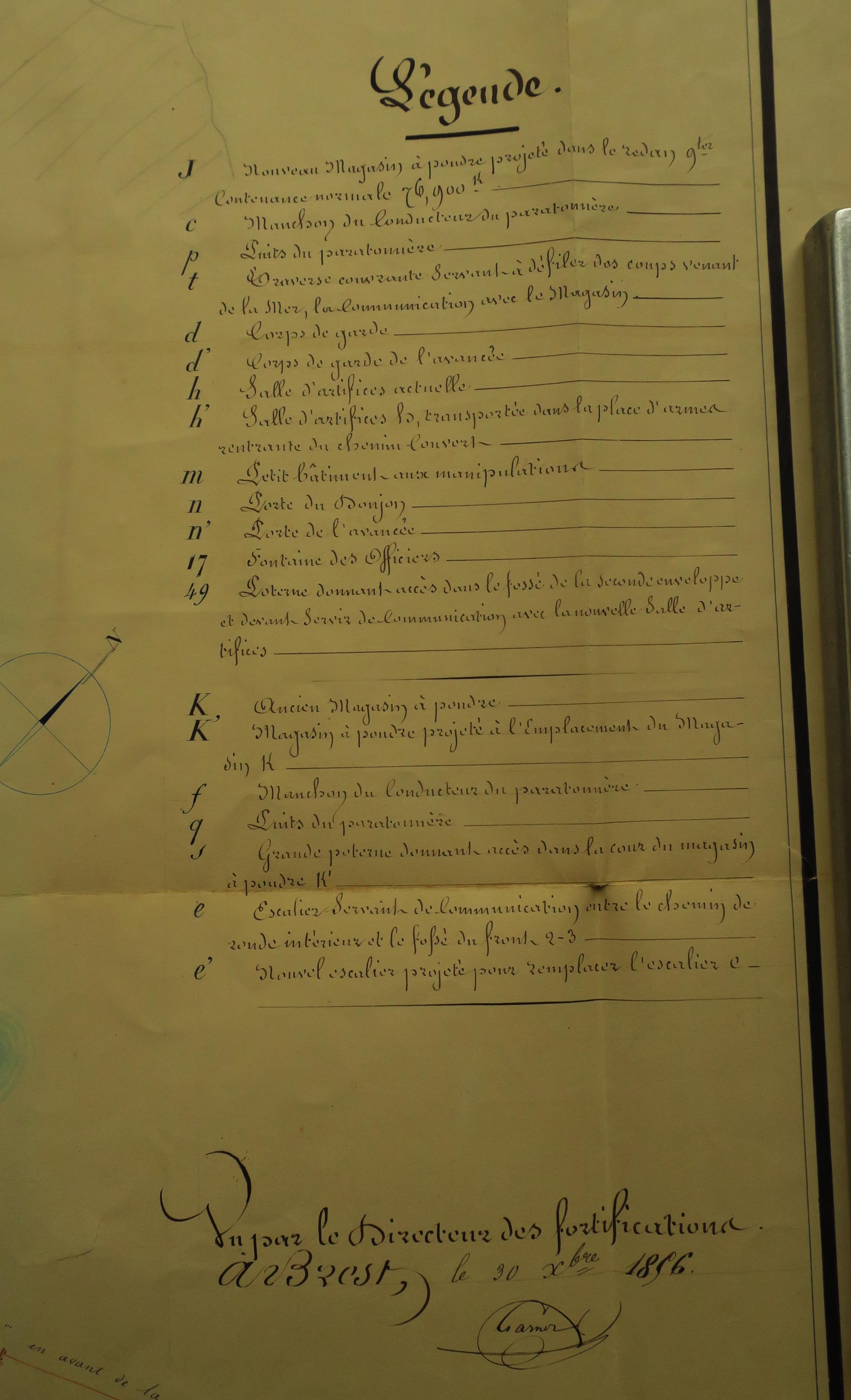 Service historique de la Défense, département Armée de Terre, Vincennes. Archives du Génie ; Article 8, Places françaises et d'Algérie : 1 VH 294, Place de Belle-Île-en-Mer, projets et dépenses annuels, 1854-1857. Direction du Génie de Brest, Place de Belle-Ile, feuille n° 9 des projets supplémentaires pour 1856-1857, magasins à poudre, 20 décembre 1856.