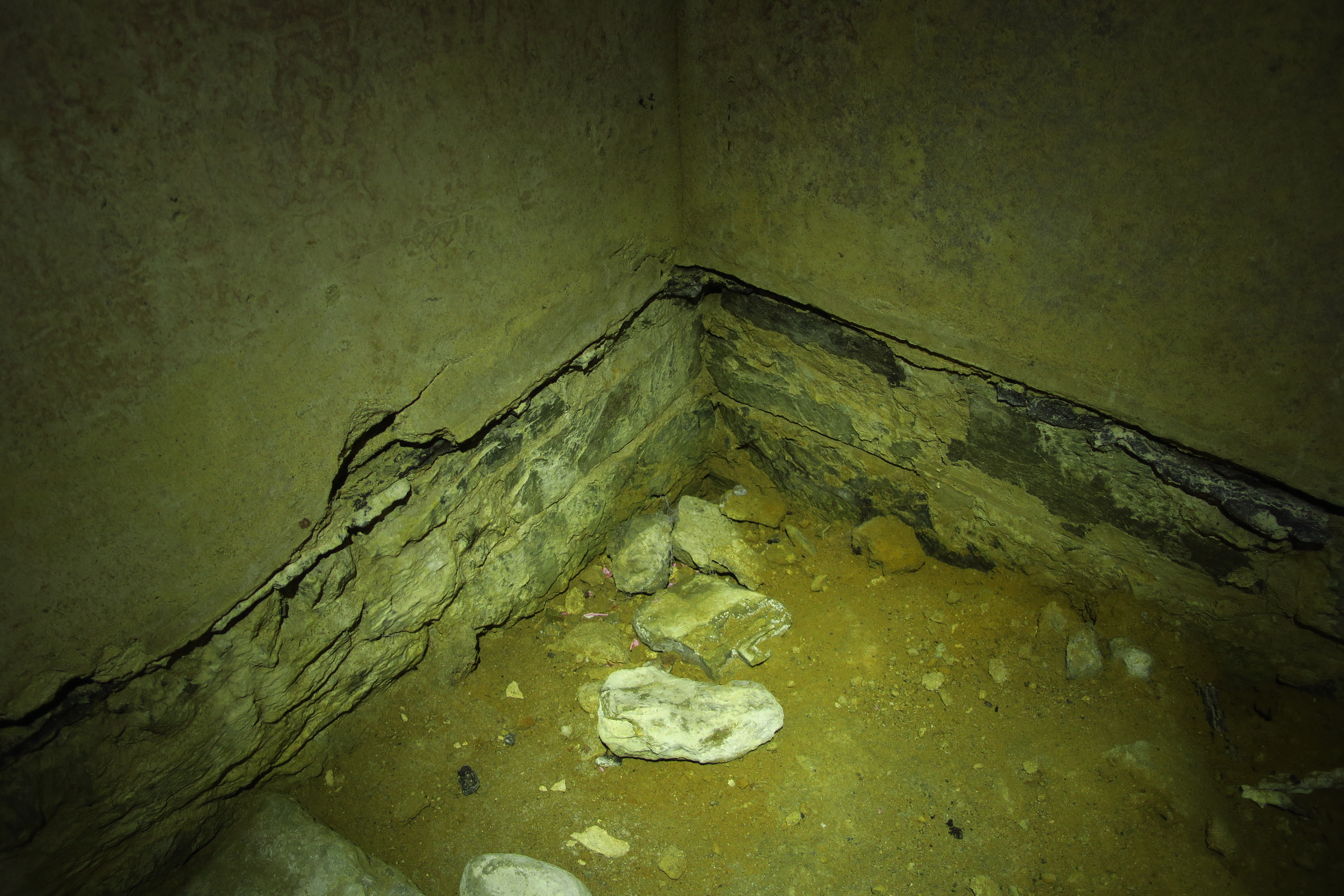 Locmaria, Grands Sables, batterie de La Ferrière, corps de garde crénelé, magasin à poudre, détail du vide sanitaire.Immatriculation