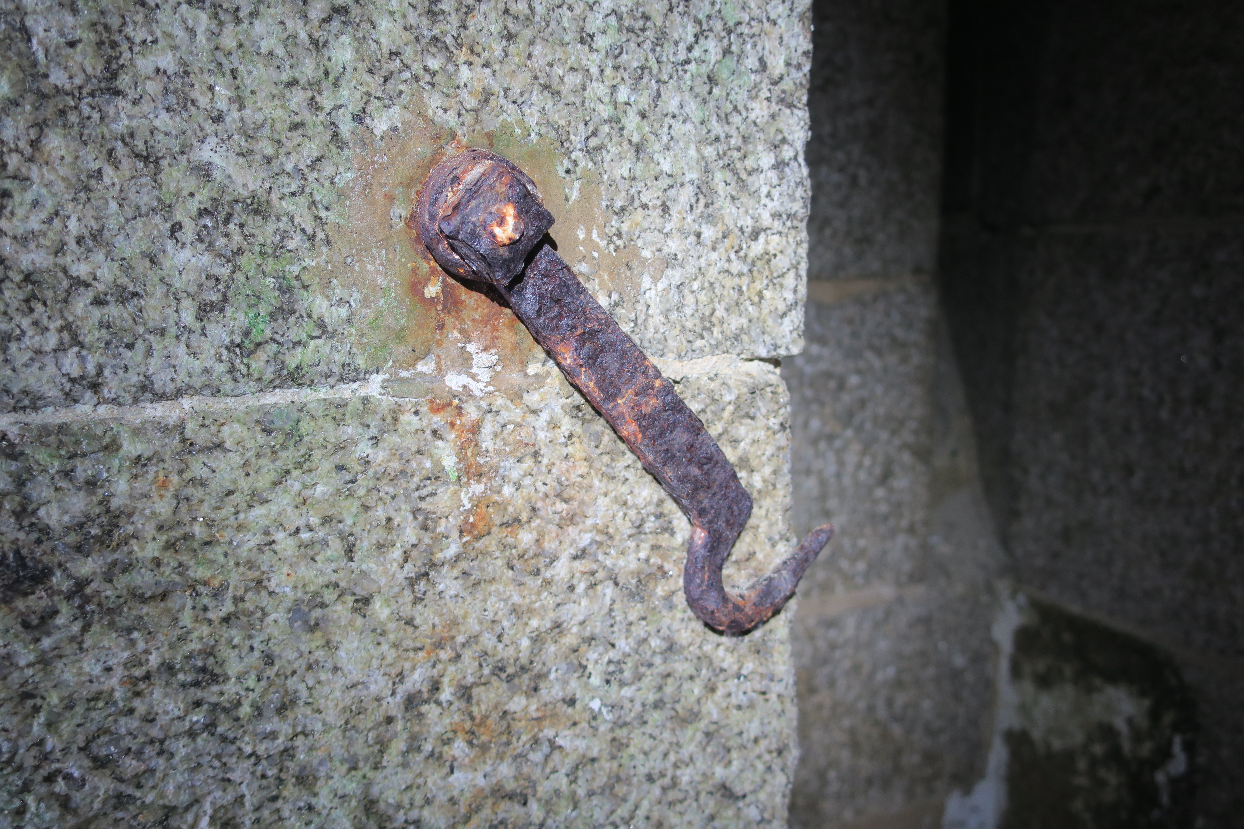 Le Palais, pointe de Taillefer, corps de garde crénelé, crochet de maintien du pont-levis.Immatriculation